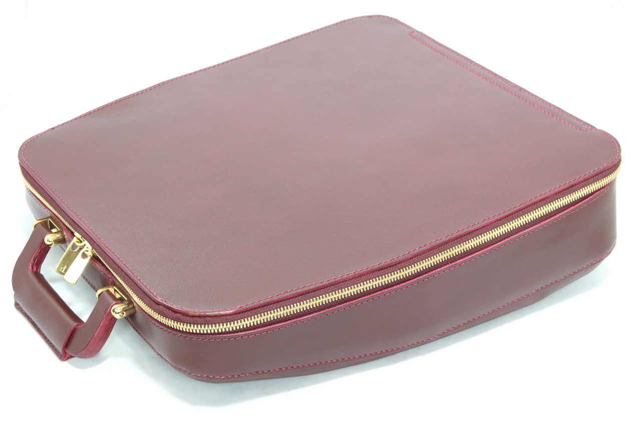 牛ヌメ革 ポータブルタイプライターケース ワインレッド