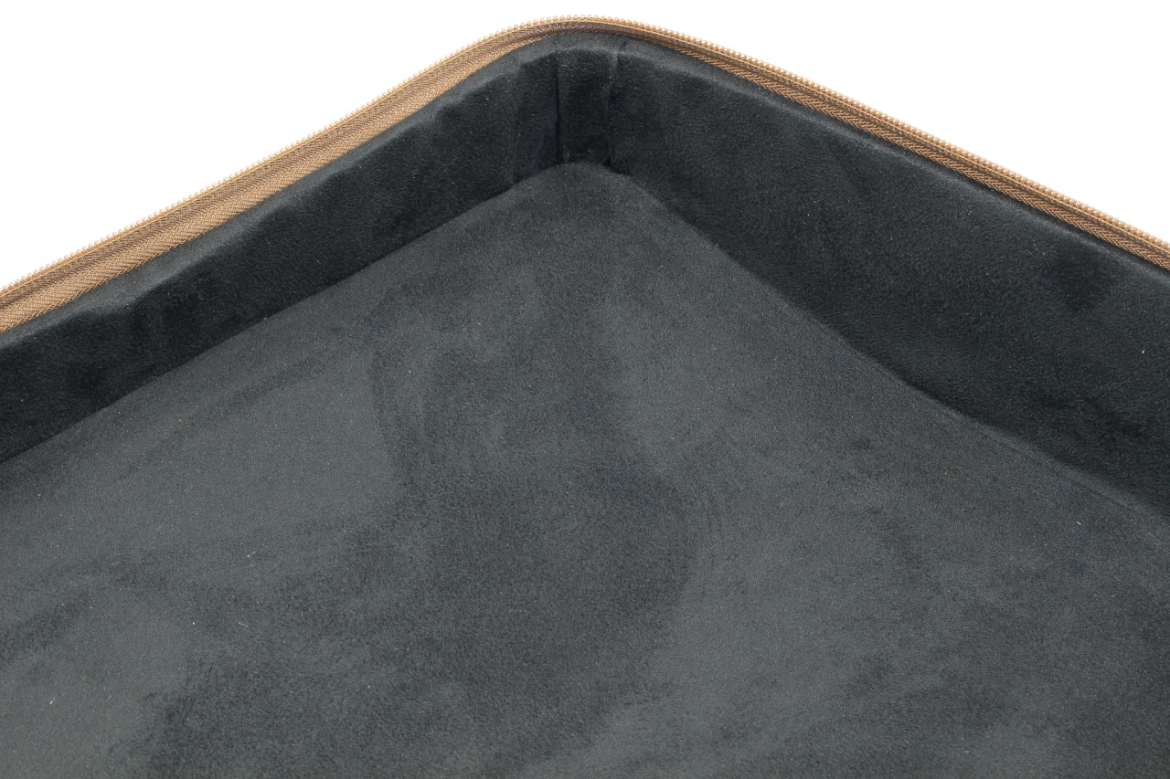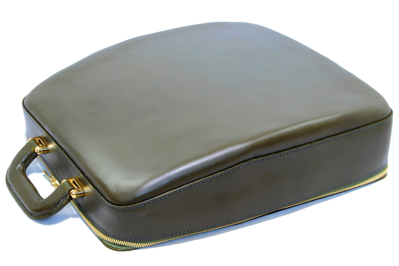 栃木レザーのヌメ革を使った当店オリジナルのタイプライターケースで、olivettiのLettera 32、Lettera DLなどのポータブルタイプライターが収納可能です。お色はolivetti Lettera 32をイメージした「モスグリーン」としていますが、モスグリーンはどのようなタイプライターでも合わせることができると思います。使用している革は「革の中の革」とも呼ばれるヌメ革を使用し裏地には高級人工皮革スエードのウルトラスエード(アルカンターラ)、ファスナーはひとつひとつの全面に入念な磨きをかけた最高級ファスナーYKKのエクセラを両開きで使うなど高級な素材を使用しています。構造もしっかりした補強材(アルミと高品質の芯地)を使用しタイプライターの重量にもしっかり耐えられる作りとなっております。