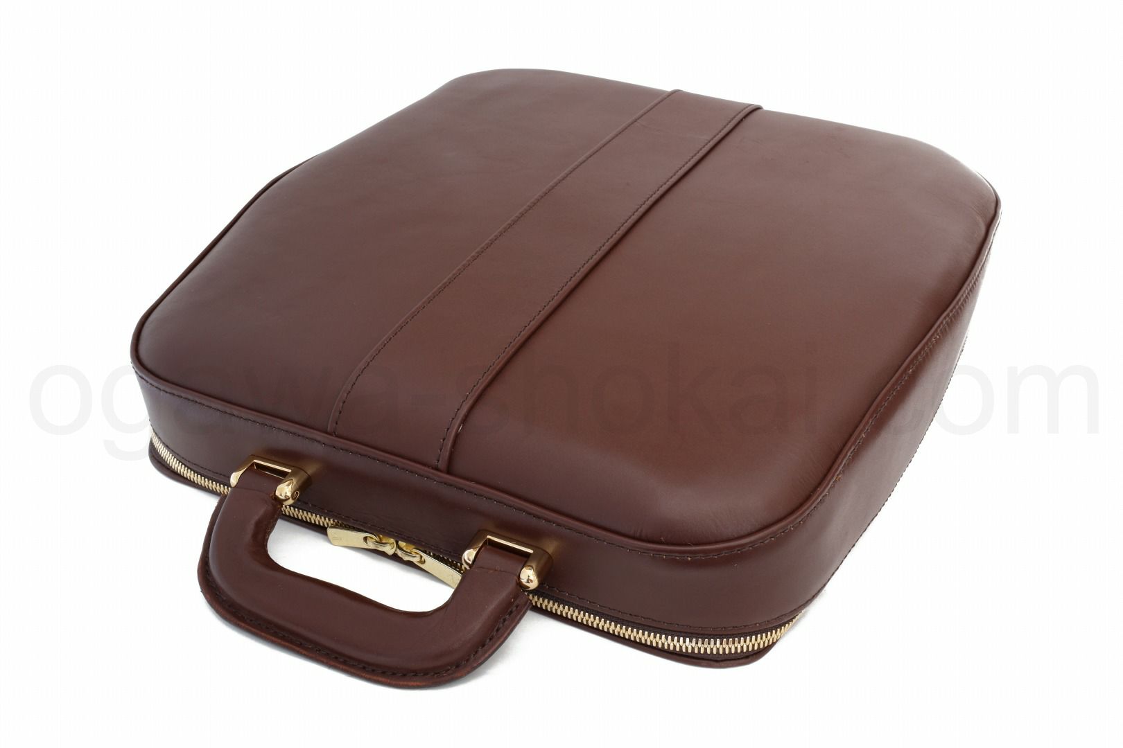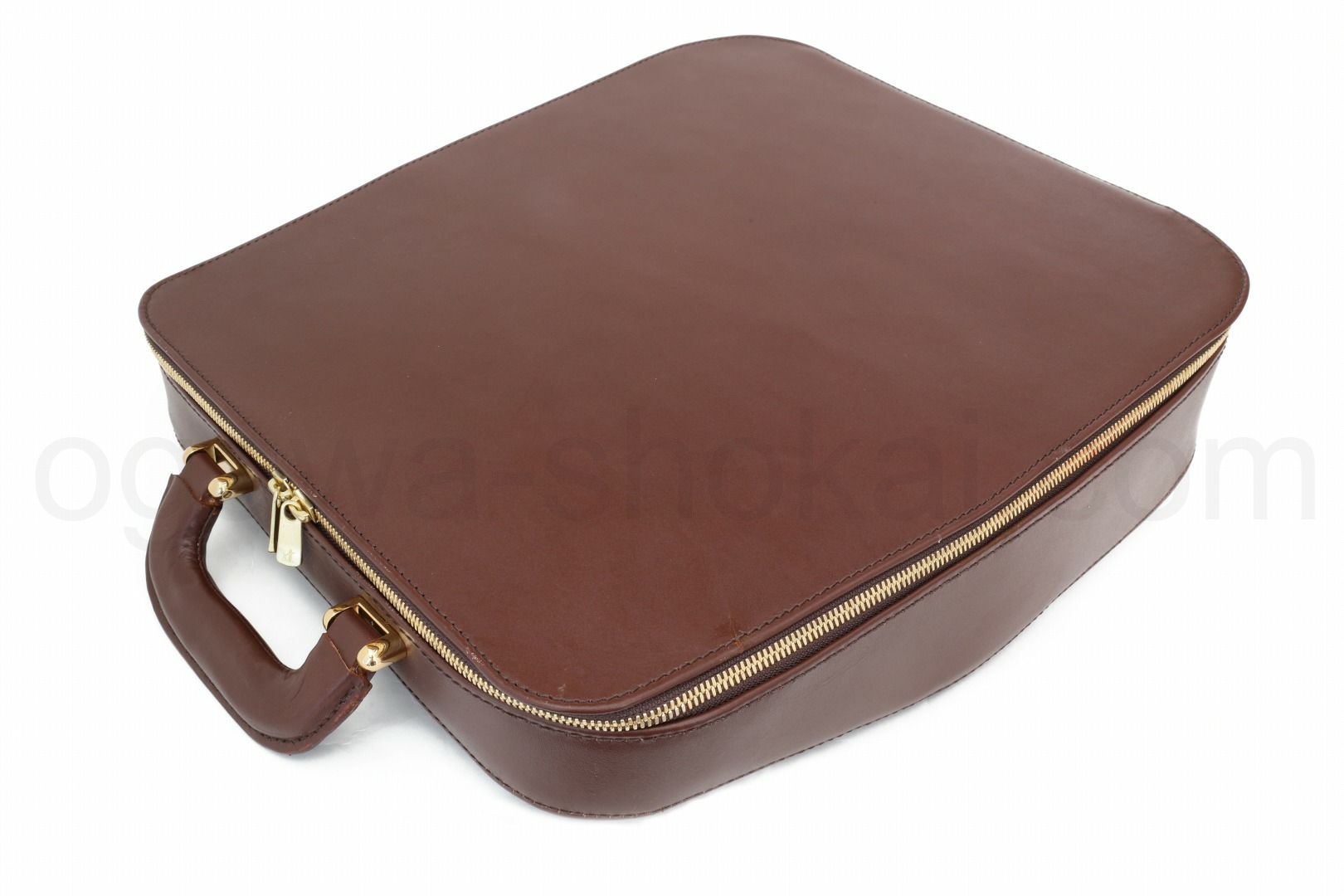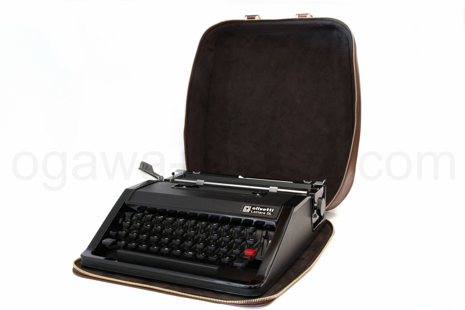 ヌメの本革を使った当店オリジナルのタイプライターケースで、olivettiのLettera 32、Lettera DLなどのポータブルタイプライターが収納可能です。お色はご好評をいただいている「ブラウン」ですので、どのようなタイプライターでも合わせることができると思います。使用している革は「革の中の革」とも呼ばれるヌメ革を使用し裏地には高級人工皮革スエードのウルトラスエード(アルカンターラ)、ファスナーはひとつひとつの全面に入念な磨きをかけた最高級ファスナーYKKのエクセラを両開きで使うなど高級な素材を使用しています。構造もしっかりした補強材(アルミと高品質の芯地)を使用しタイプライターの重量にもしっかり耐えられる作りとなっております。
