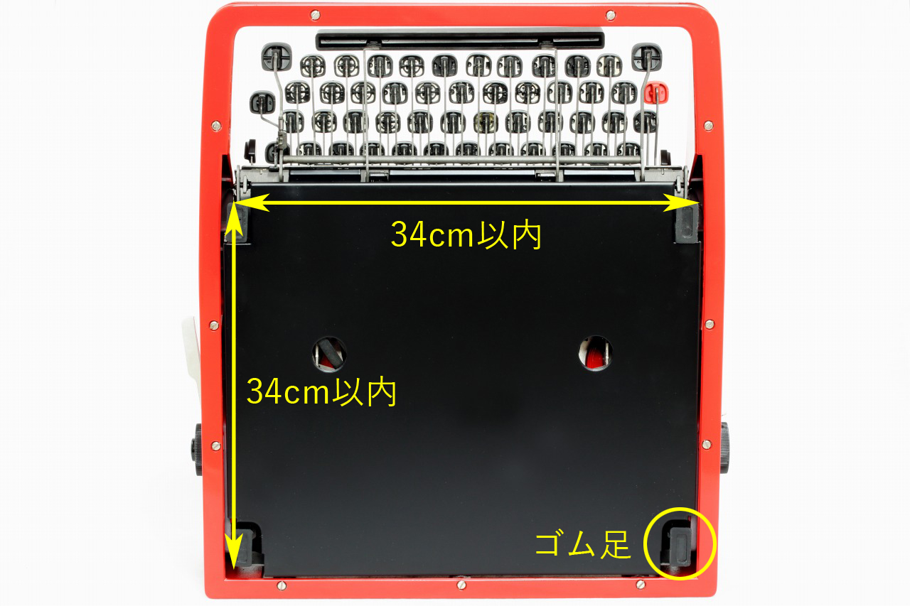 マットのサイズは34cm×34cmとなっています。お使いのタイプライターのゴム足の位置からご使用可能かご判断ください。ゴム足が34cm×34cm以内にあればご使用いただけます。【装着例】を参考にしてください。