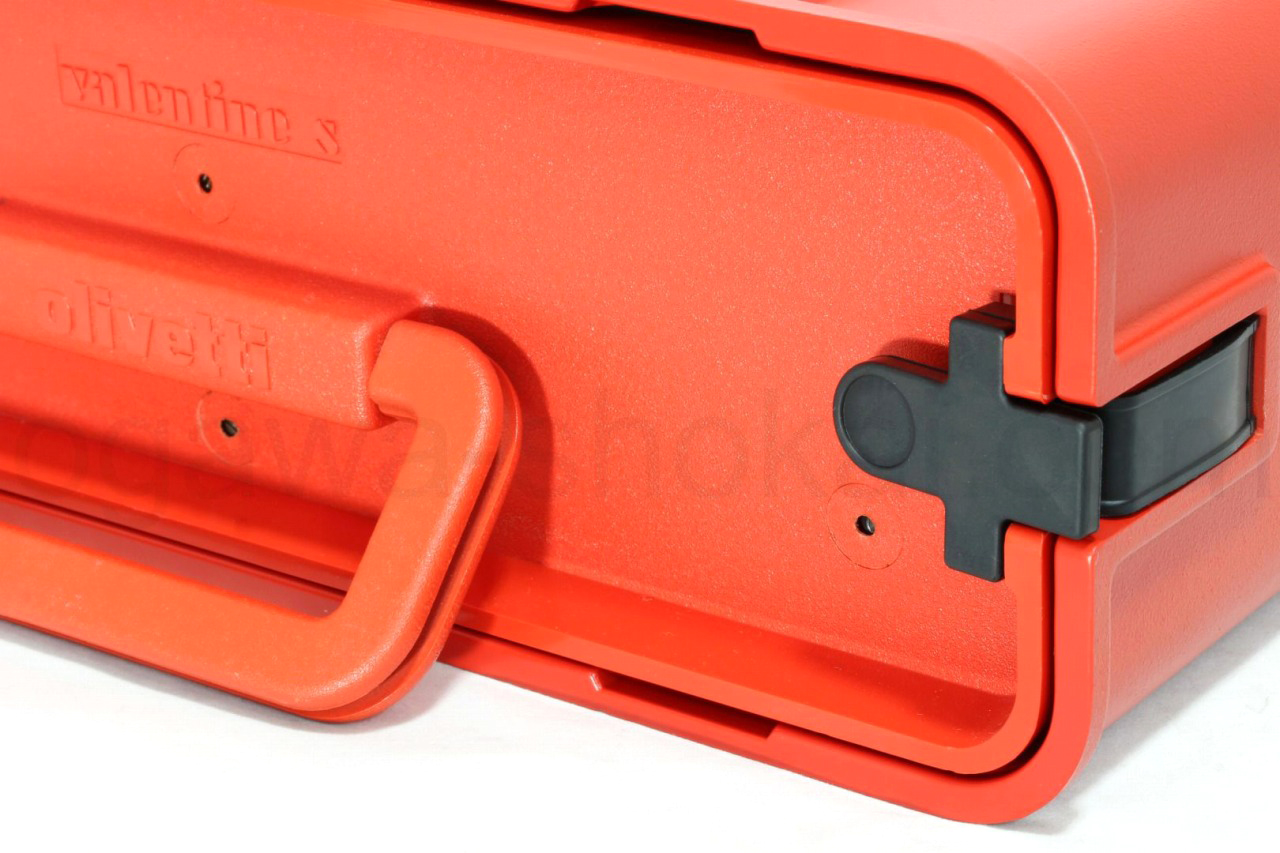 ところがvalentineの特徴でもある真っ赤なバケツ(タイプライターを入れるケース)についているゴムストラップの痛みが多くゴムが切れてしまっていたり今にも切れそうなものばかり。ケースも本体同様デザインのひとつであるvalentineを台無しにしてしまっています。