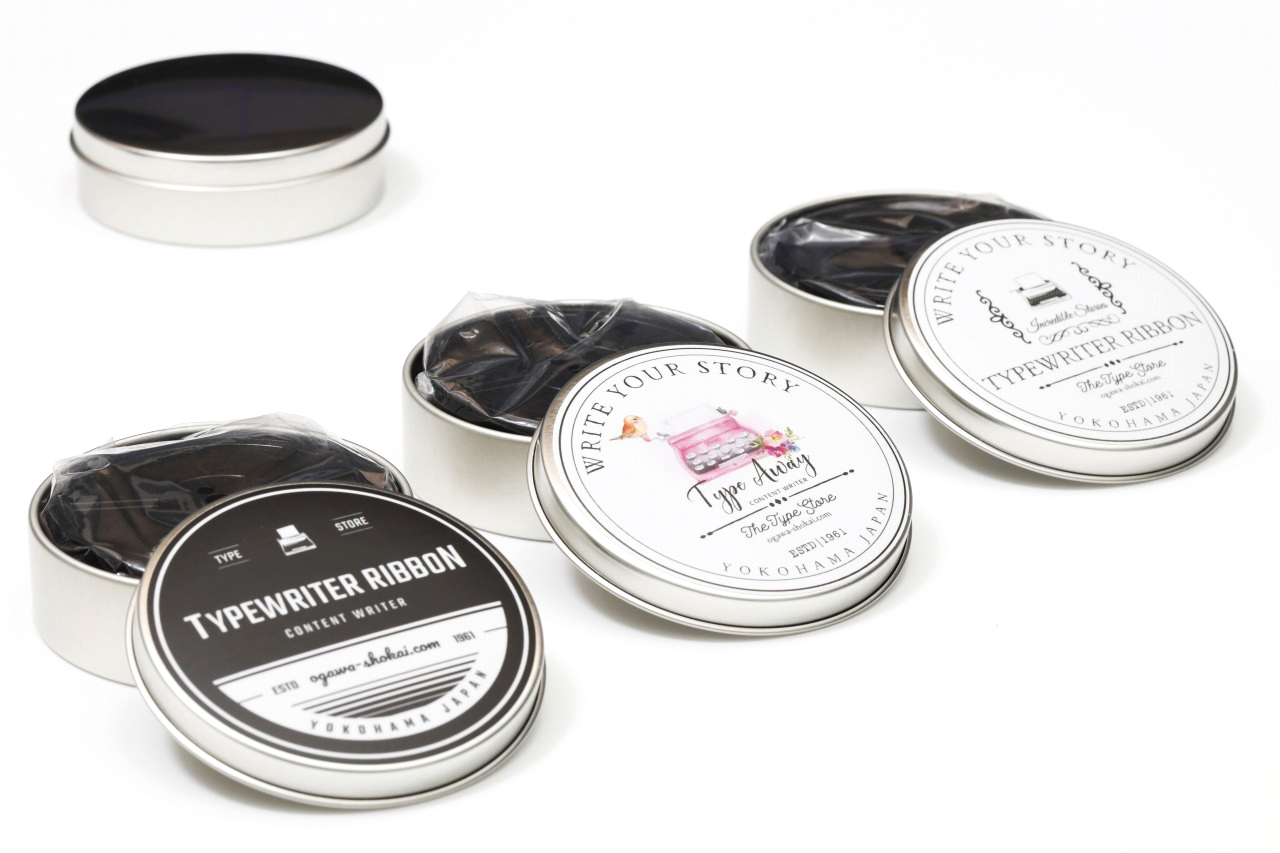 タイプライターのインクリボンにTin缶を組み合わせた商品です。3種類のデザインと無地缶をご用意しております。無地缶にはDIYで印刷できるラベルシールと印刷用テンプレートをご用意していますのでご家庭のプリンターでお好きなデザインをプリントアウトして楽しむことができます。