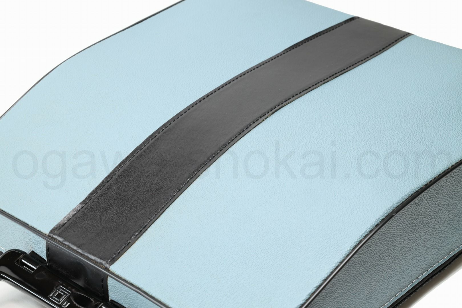 タイプライターケースのリフォームをご依頼時の際は無料で外観クリーニングを行います。専用の溶剤を使用し、パイピングの間に詰まった汚れも含めて細かいところまで可能な限りクリーニングいたします。中央の帯の部分やLettera DLの場合裏面(黒色)の部分は
