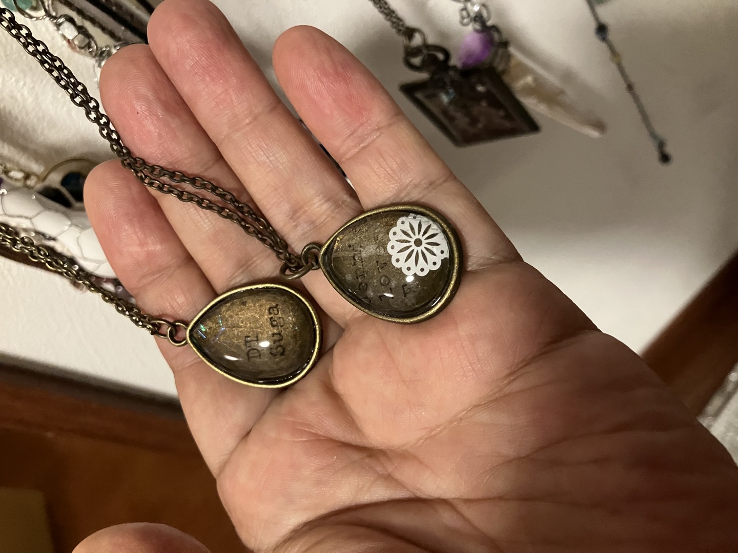 ペンダントにメッセージを入れるためにタイプライターを使われた例です。和紙にタイピングしてレジンで固められたそうです。リボン交換前でインクが薄く何度も重ね打ちして製作されたとのことですが今回、これに合うリボンをお求めいただきましたので、新しいリボンだと一度で綺麗に仕上がるかと思います。