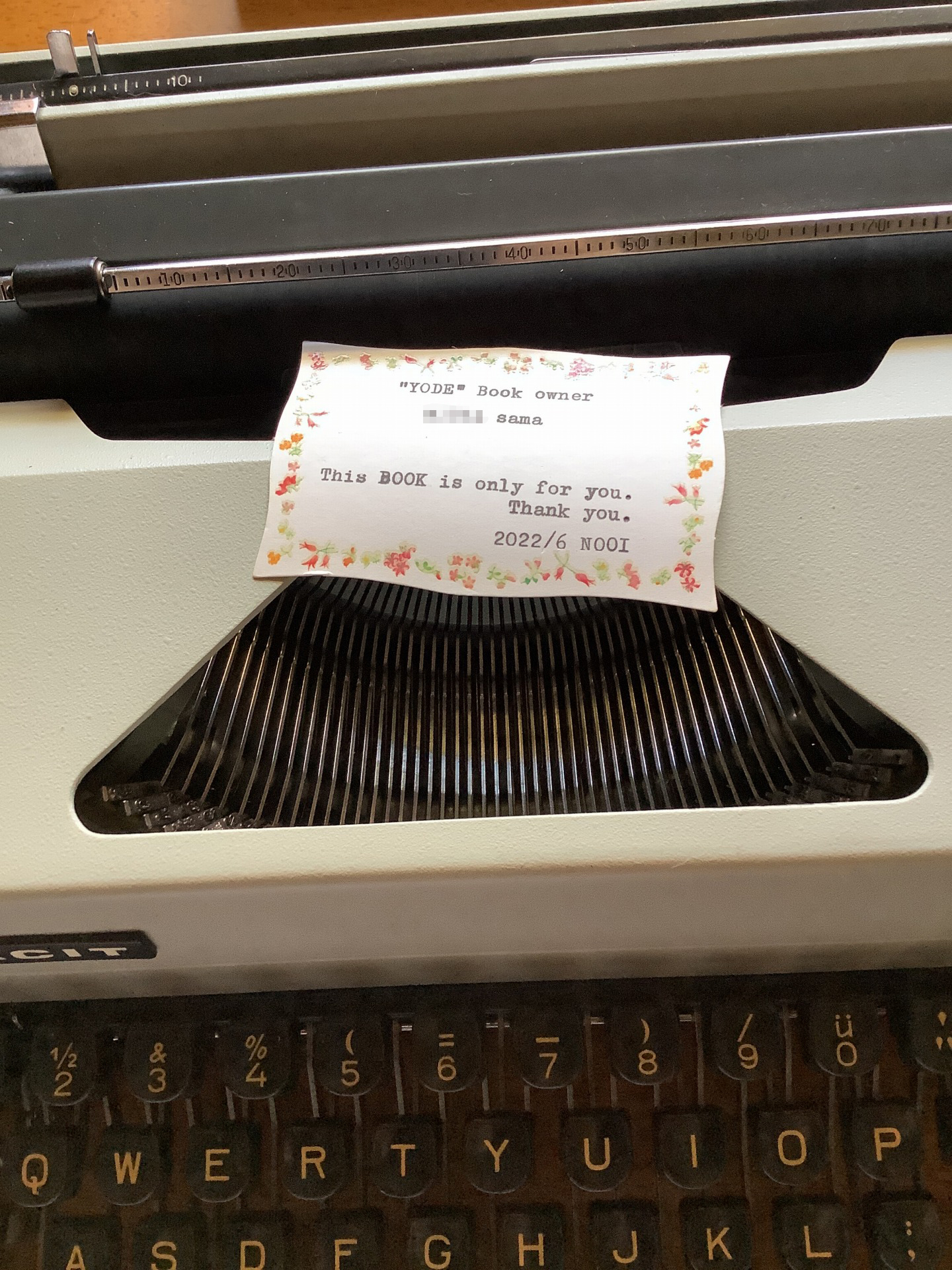 こちらの作品は「消しゴムはんこと文具のちいさなお店」を営業なさっている*-ita*の小屋さまです。リボンはもちろん、タイプライター教本や入門書もお求めいただいていることから、きちんとタイプライターを知ろう。というしっかりしたお考えからこのような素敵なアイディアが生まれているのだと思います。今後ワークショップなども考えられているようで2台目としてタイプライターの整備もご用命いただきました。*-ita*の小屋さまではタイプライターを使ったオーダーメイドの名刺やメッセージカードもお頼みいただけます。ぜひ覗いてみてください。※画像は当店で整備したタイプライターではございません。