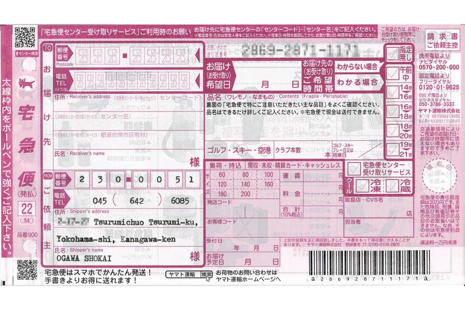 手動式タイプライターは決まったフレーズでも毎回タイピングする必要がありますが、電子式タイプライターでメモリ機能がついている機種(例:IBM Wheelwriter 3500など)であれば、ご自身の住所やお名前などよく使うフレーズはタイプしなくてもタイプライターから呼び出すことができます。日付や差出人など毎回異なるところだけ手動でタイプすればいいので、ワープロやパソコンと同じような感覚で使えます。ヤマト運輸の場合、国内でもローマ字(活字体)を使用しても問題ないようですが、使用の際は各運送会社に確認ください。※画像は手動式タイプライターでのタイプ例です。