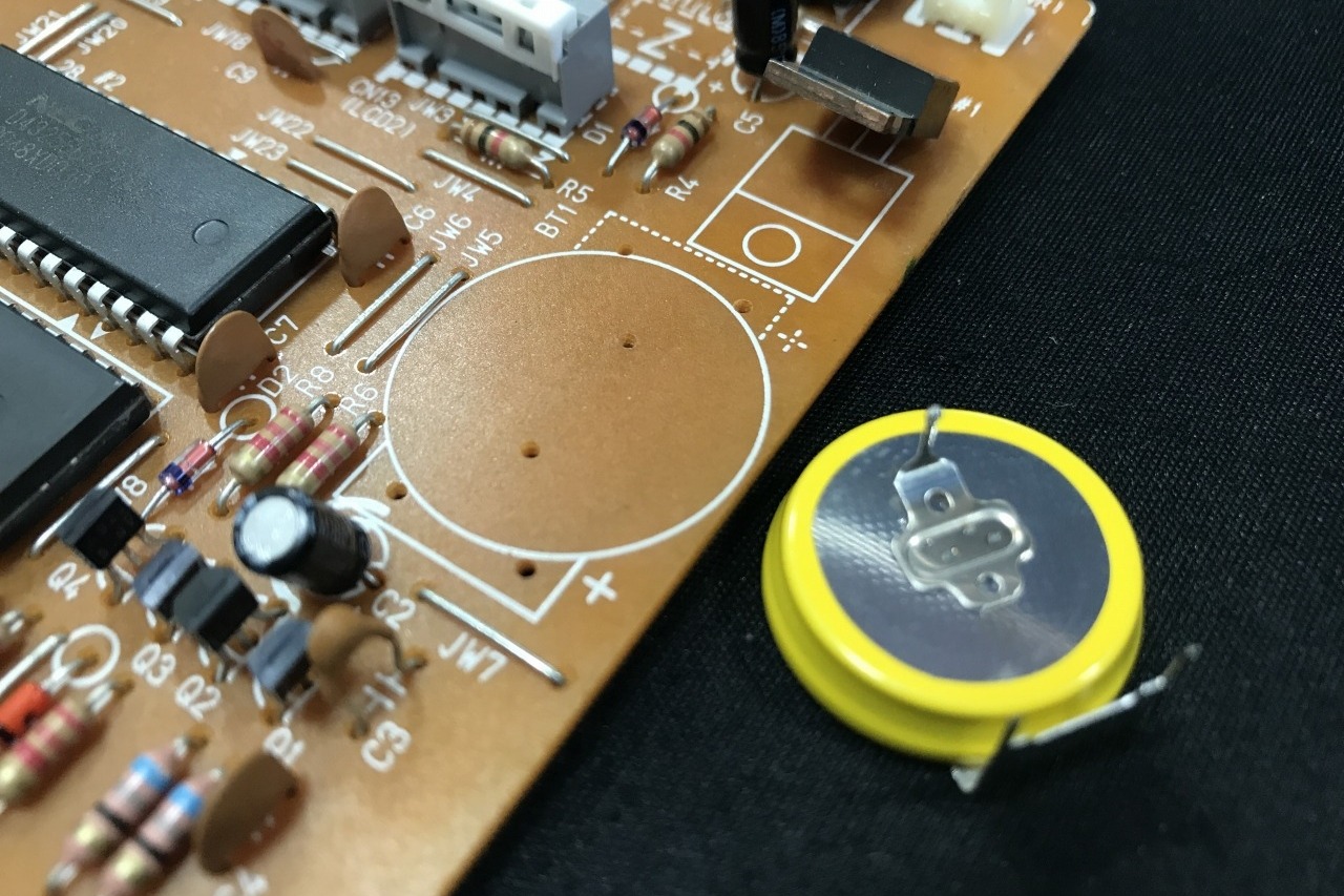 ハンダで取り付けられている基盤の電池交換をいたしました。同時に汚れのひどかったキーボードの分解洗浄(無料)を行いました。