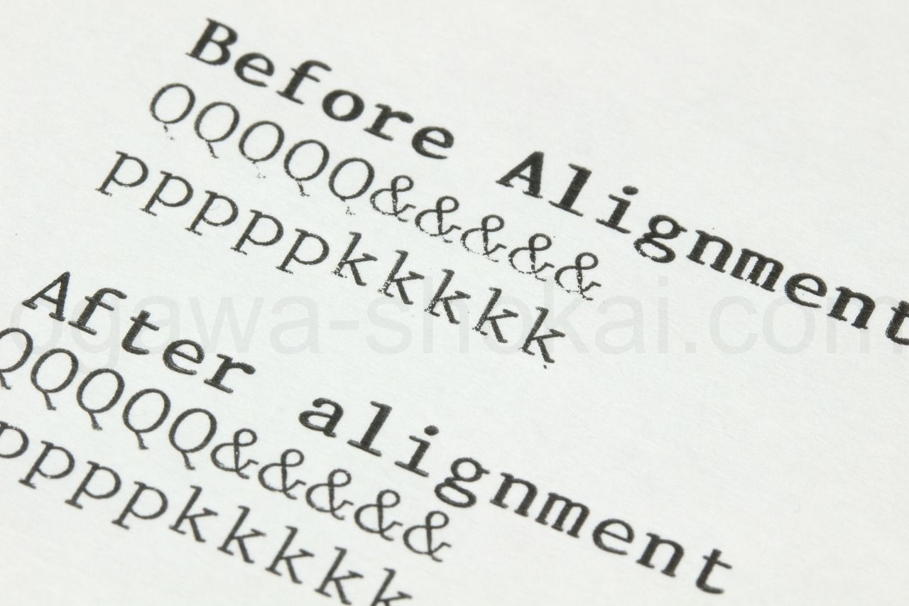 アライメントを調整をいたしました。手動式タイプライターはもちろんですが電子式タイプライターでもアライメント調整は必要です。当店では新品のタイプライターであってもそのまま販売せずにきちんとアライメント調整後に出荷しております。