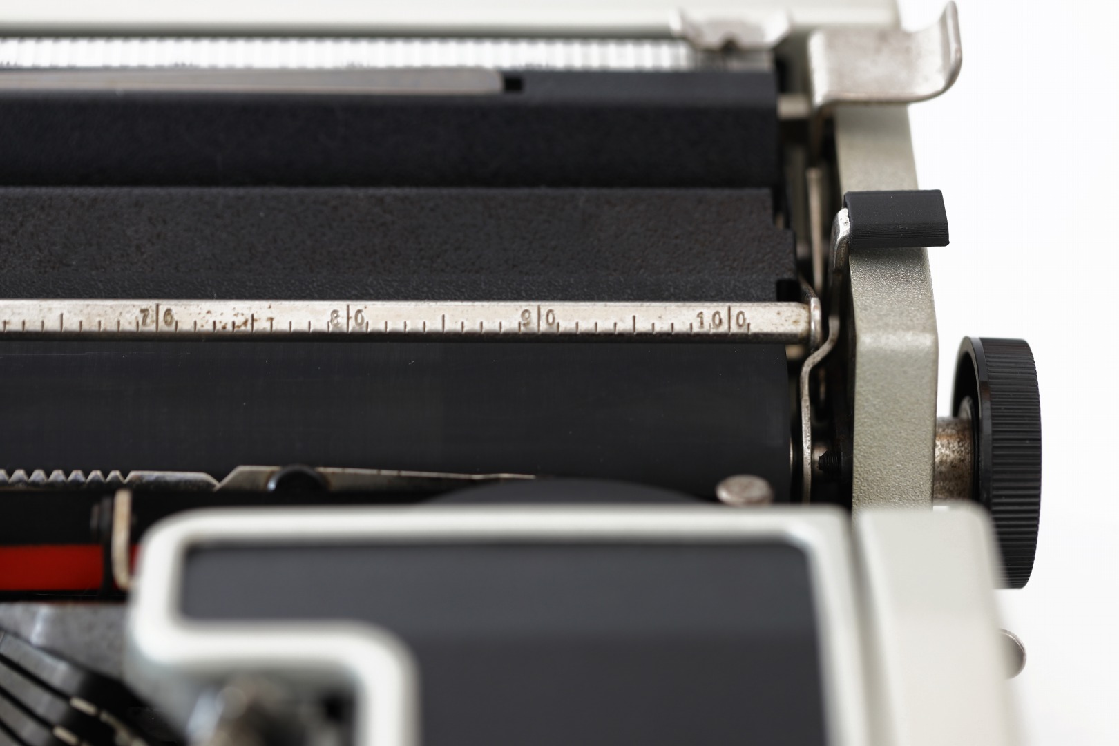 タイプライターはすでに生産されていないため部品は基本的に新品の部品は入手はできませんが、当店では3Dプリンターを駆使して対応が可能な場合もあります。ご相談ください。