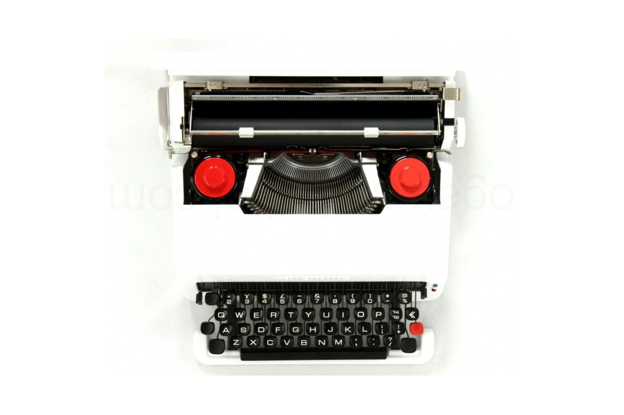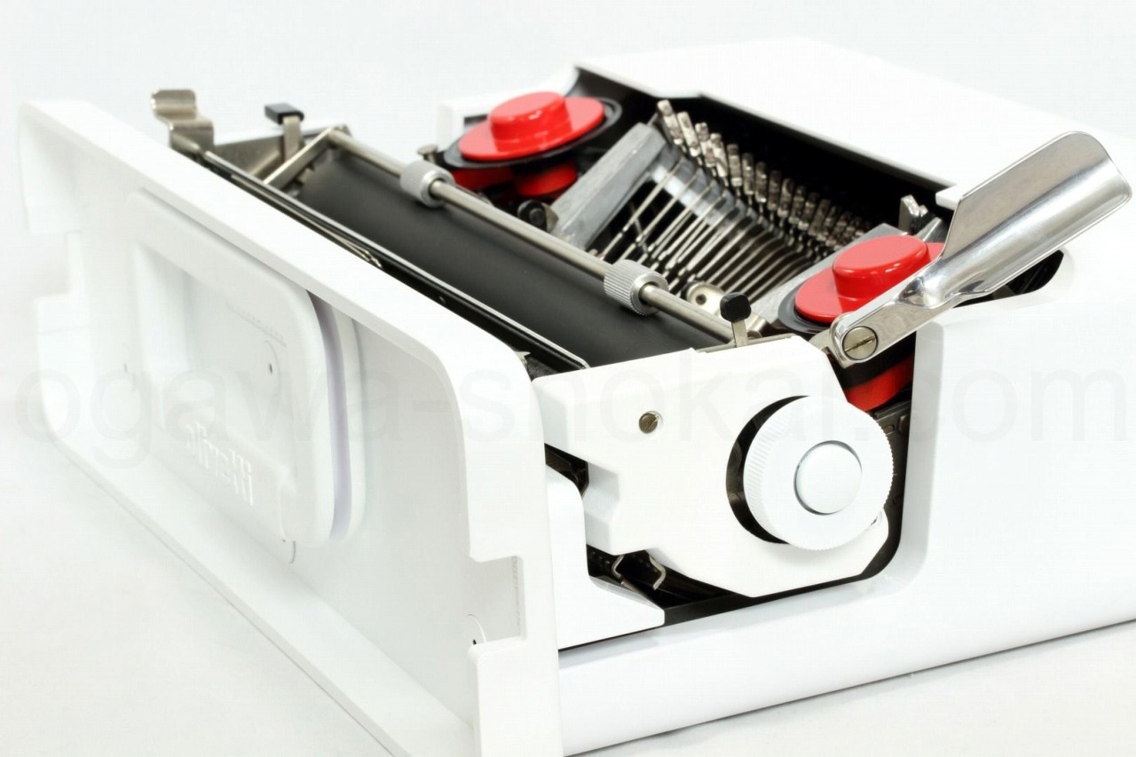フリーマーケットでご購入いただいたタイプライターをオーバーホールしボディーのリペイント(赤色から白)しました。またお客さまのご要望によりスプールキャップをオリジナルのオレンジから赤へ、プラテンノブも黒から白に変更して世界にひとつだけのolivetti valentineを製作させていただきました。