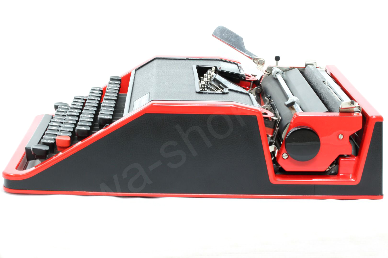 olivettiのポータブルタイプライターの最上位機種であるLettera DLのボディをカスタムカラーに再塗装して今はなき新品タイプライターのコンディションに近いフルレストアされた中古タイプライターです。Lettera DLはの多くはボディーの角が欠けたものが多くベース機もやはり欠けていまっておりましたが綺麗に修復してございます。またオリジナルの塗装は塗りっぱなしのため表面はザラザラしており塗装の剥げもよく見受けられるのが一般的ですが、こちらはベースコートの上からクリア塗装をし、自動車のボディーのようにツルツルな塗装面にして傷が付きにくい工夫をしております。もちろんタイプライターの内部は専門店品質でオーバーホール(分解洗浄)しており各部注油/調整/点検済なので届いたらすぐに。そして何より重要な、手に入れたその時限りではなく長期に渡ってご使用いただけます。キーボード配列はインターナショナル配列となっておりウムラウトが使用できますのでドイツ語/スウェーデン語/フランス語などもタイピングできます。ケースは痛みの激しい純正ケースではなく当店オリジナルの本革ケースをセットにしました。