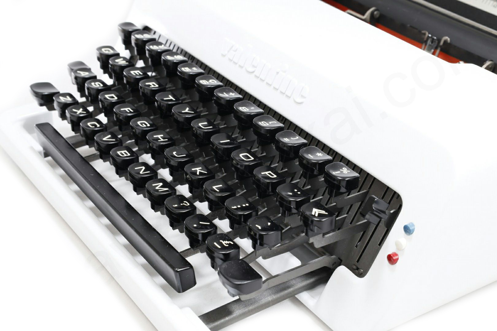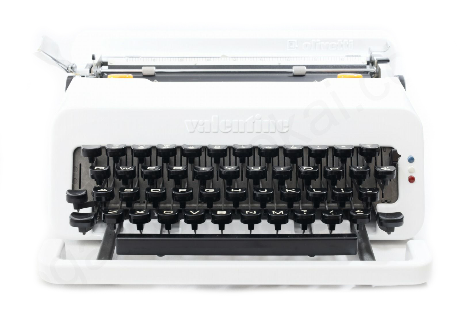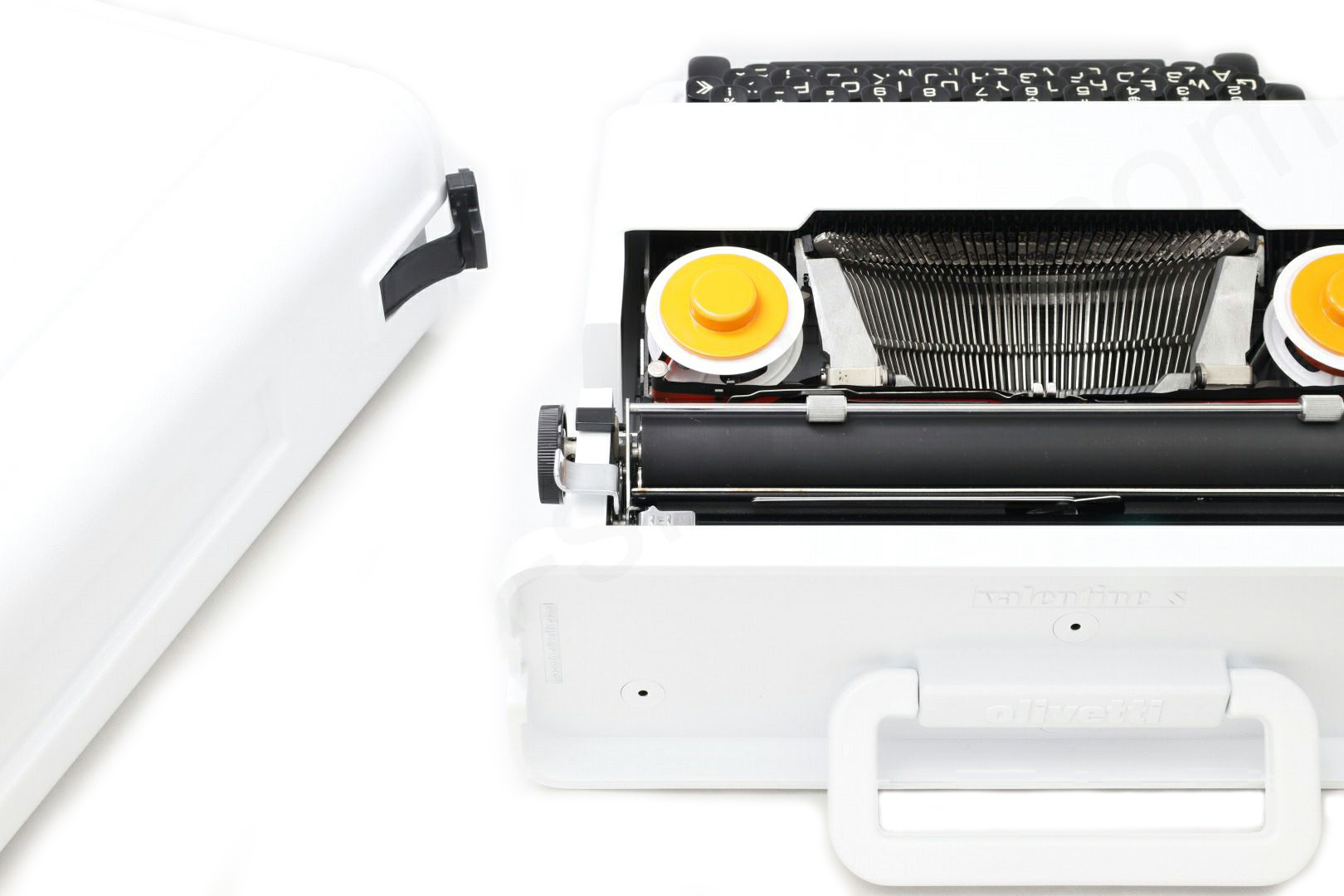 貴重な限定色である白にリカラーしたolivetti valentineです。一般的にvalentineは赤というイメージですが赤や白の他に緑などもございます。その限定色の中で白は一番の人気で程度のよい白いvalentineは手に入れることは簡単ではありません。またvalentineはスレ傷が付きやすくせっかくの綺麗なボディーカラーもくすんでしまったものが多いため再塗装と同時にリカラーで限定色のvalentineを製作しました。難易度の高いケースの内側も白にリペイントして普段見えない部分も白に塗装済です。更にベースコートの上からクリア塗装をしてオリジナルより傷が付きにい塗装となっております。もちろんタイプライターの内部は専門店品質でオーバーホール(分解洗浄)しており各部注油/調整/点検済なので届いたらすぐに。そして何より重要な、手に入れたその時限りではなく長期に渡ってご使用いただけます。キーボード配列はインターナショナル配列となっておりウムラウトが使用できますのでドイツ語/スウェーデン語/フランス語などもタイピングできます。痛みのあるケースのゴムも当店オリジナルの新品に交換、リボンスプールはオリジナルの黒からボディーカラーに合わせてホワイトに塗装しました(黒に変更可)。