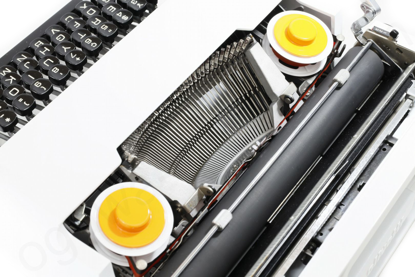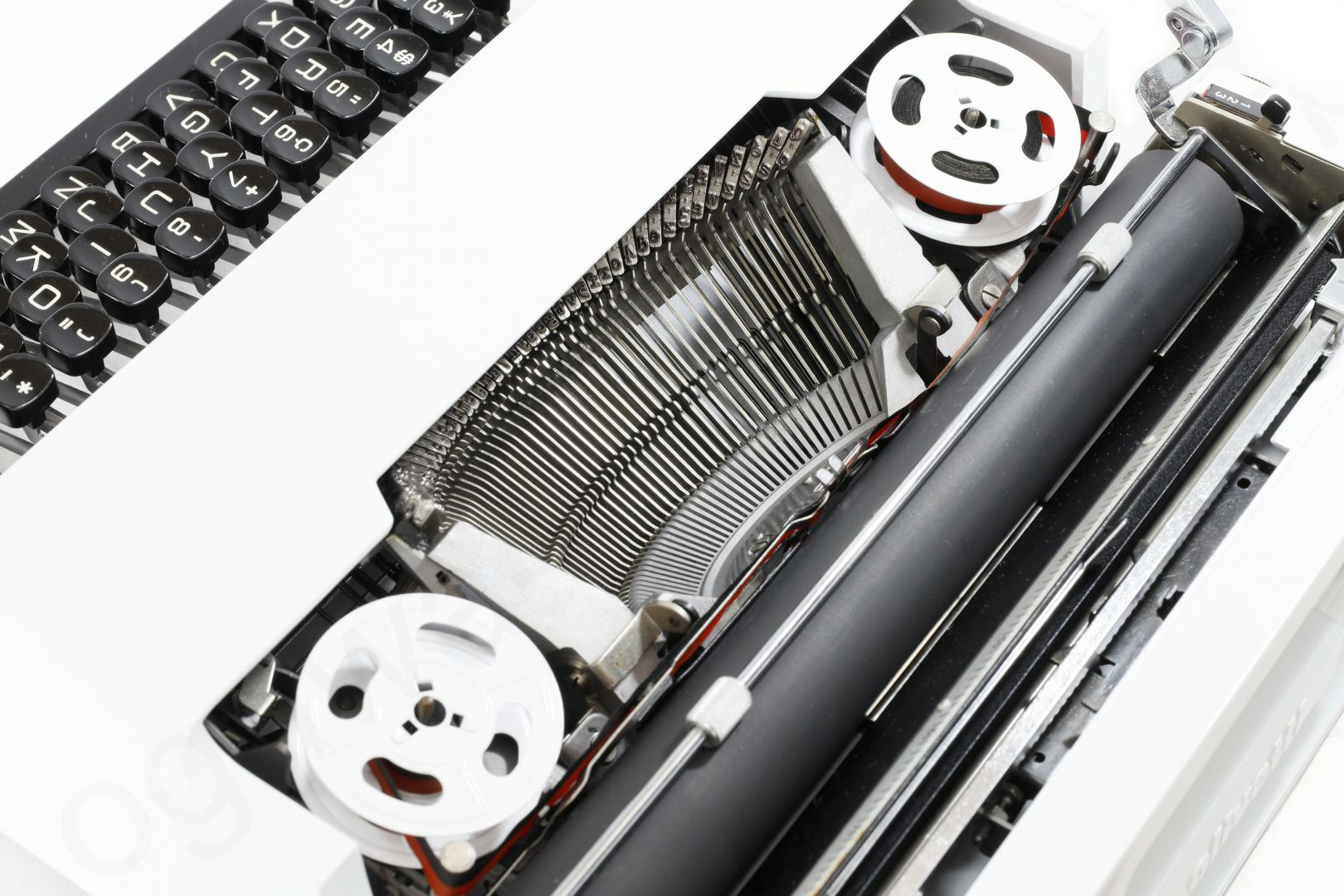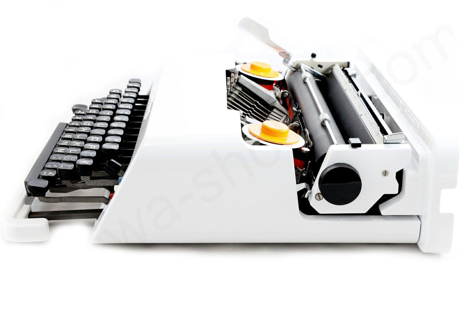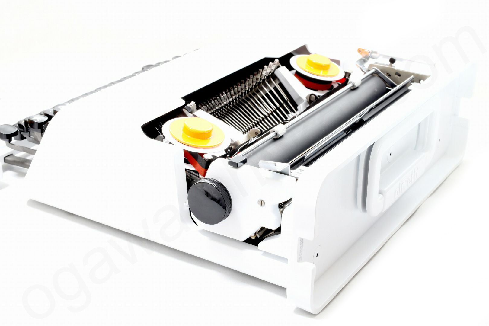 貴重な限定色である白にリカラーしたolivetti valentineです。一般的にvalentineは赤というイメージですが赤や白の他に緑などもございます。その限定色の中で白は一番の人気で程度のよい白いvalentineは手に入れることは簡単ではありません。またvalentineはスレ傷が付きやすくせっかくの綺麗なボディーカラーもくすんでしまったものが多いため再塗装と同時にリカラーで限定色のvalentineを製作しました。難易度の高いケースの内側も白にリペイントして普段見えない部分も白に塗装済です。更にベースコートの上からクリア塗装をしてオリジナルより傷が付きにい塗装となっております。もちろんタイプライターの内部は専門店品質でオーバーホール(分解洗浄)しており各部注油/調整/点検済なので届いたらすぐに。そして何より重要な、手に入れたその時限りではなく長期に渡ってご使用いただけます。キーボード配列はインターナショナル配列となっておりウムラウトが使用できますのでドイツ語/スウェーデン語/フランス語などもタイピングできます。痛みのあるケースのゴムも当店オリジナルの新品に交換、リボンスプールはオリジナルの黒からボディーカラーに合わせてホワイトに塗装しました(黒に変更可)。