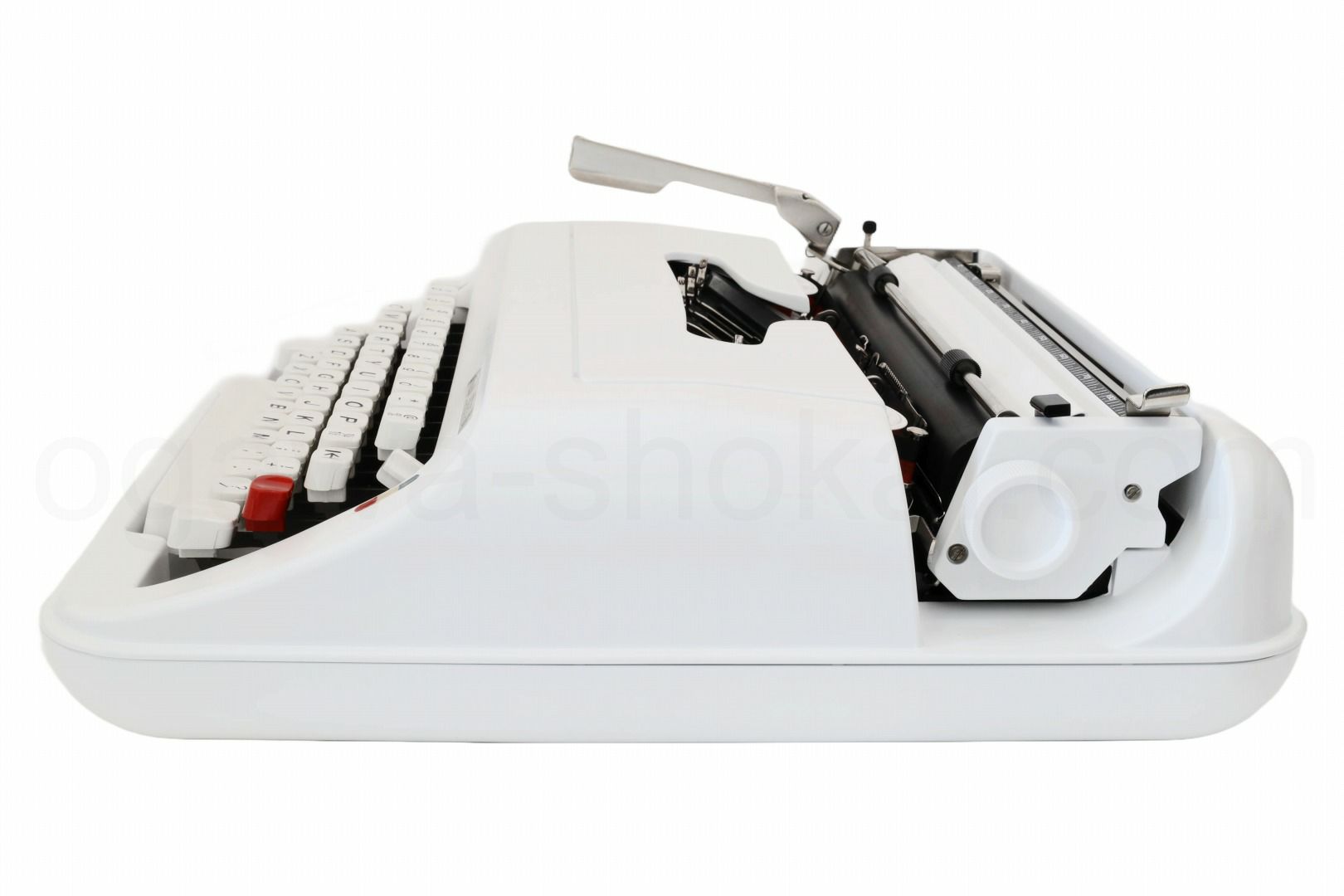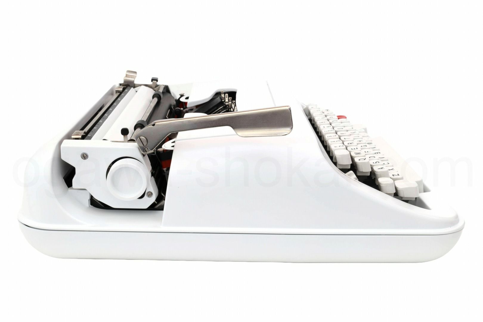olivetti社のポータブルタイプライターLettera 34をフルレストアした今はなき新品タイプライターのコンディションに近い中古タイプライターです。オリジナルはアイボリーとホワイトキーバードの仕上げですが、こちらはリボンスプールを含めてオールホワイトで仕上げました。キーボード配列は使いやすいスタンダードな英文配列となっていて多用途に使うことができます。Lettera 34は特にケースとボトムカバーに痛みがあるものが多いですが、再塗装品のこちらの商品は新品同様の綺麗な状態です。もちろんタイプライターの内部は専門店品質でオーバーホール(分解洗浄)しており各部注油/調整/点検済なので届いたらすぐに。そして何より重要な、手に入れたその時限りではなく長期に渡ってご使用いただけます。