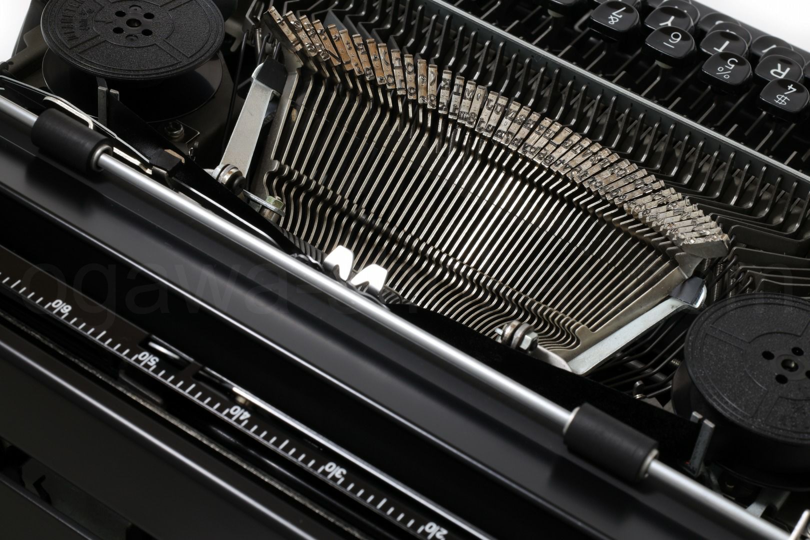 エコノミー品質のタイプライターですので、オーバーホール(分解洗浄)はいたしておりませんが、徹底的なクリーニングで清潔なタイプライターです。傷や汚れに関してはスタンダード品質と異なり、研磨やコーティングを省いておりますため傷や汚れが目立つ傾向です。ここでは全体的なお写真では分かりにくい傷や汚れを中心にご紹介しています。全ての傷汚れを掲載することは困難なので目立つものを中心にご紹介しています。こちらでクローズアップしていない傷汚れがある場合もございますのでご承知おきください。