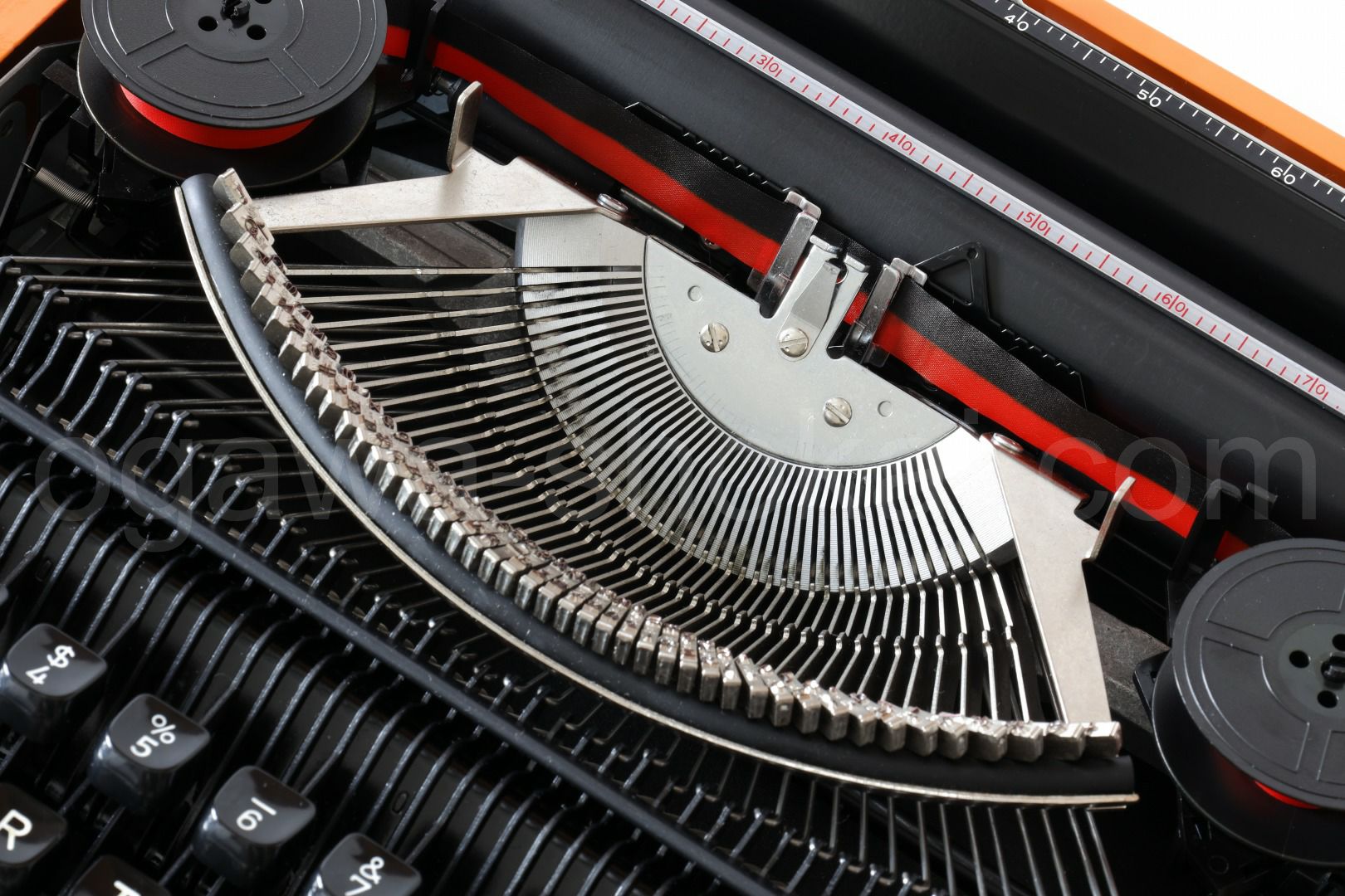エコノミー品質のタイプライターですので、オーバーホール(分解洗浄)はいたしておりませんが、徹底的なクリーニングで清潔なタイプライターです。傷や汚れに関してはスタンダード品質と異なり、研磨やコーティングを省いておりますため傷や汚れが目立つ傾向です。ここでは全体的なお写真では分かりにくい傷や汚れを中心にご紹介しています。全ての傷汚れを掲載することは困難なので目立つものを中心にご紹介しています。こちらでクローズアップしていない傷汚れがある場合もございますのでご承知おきください。