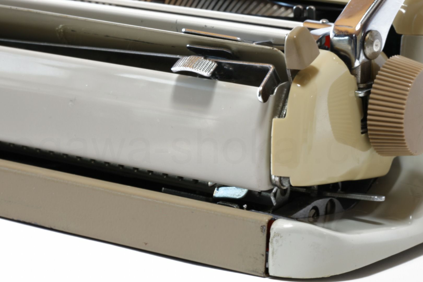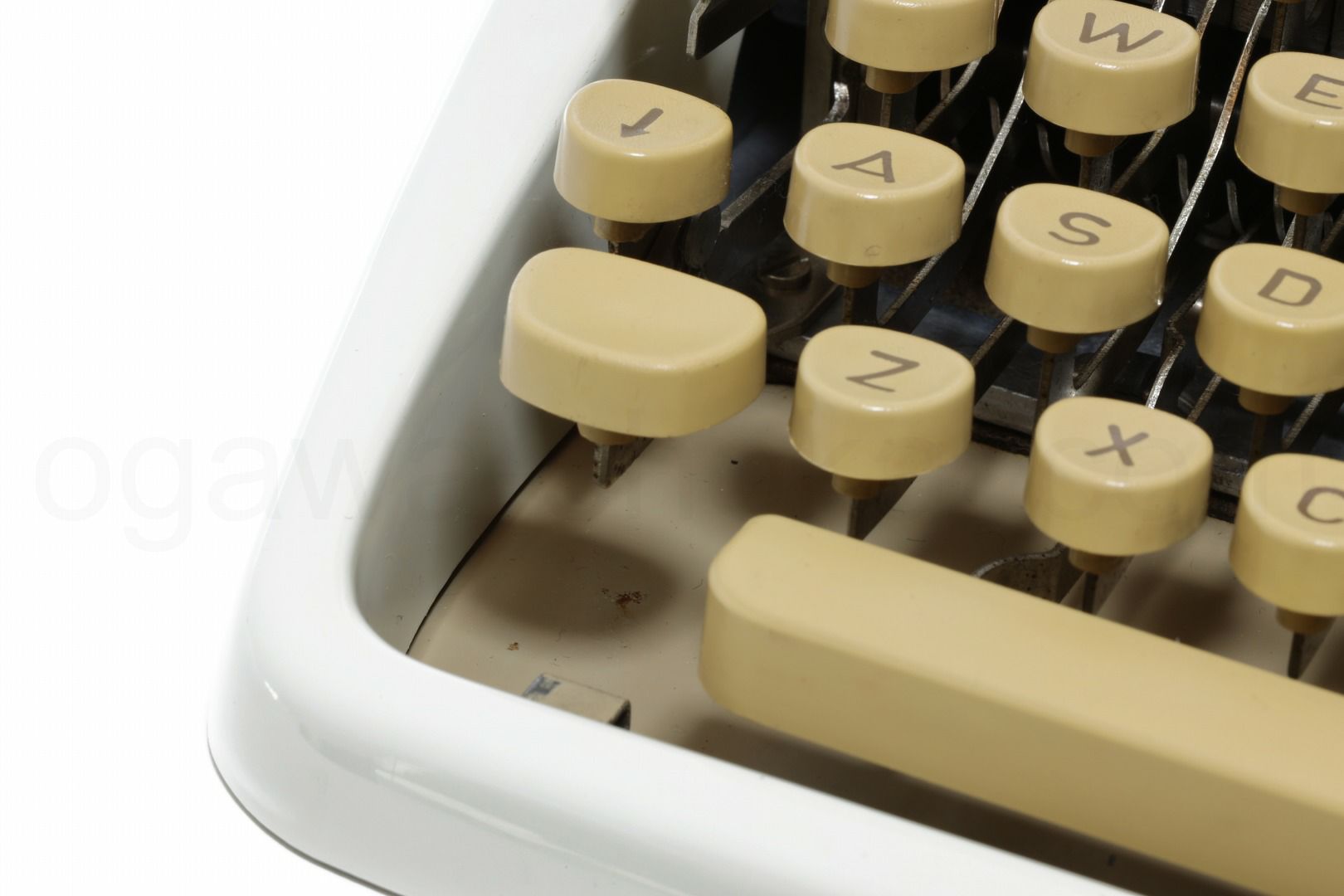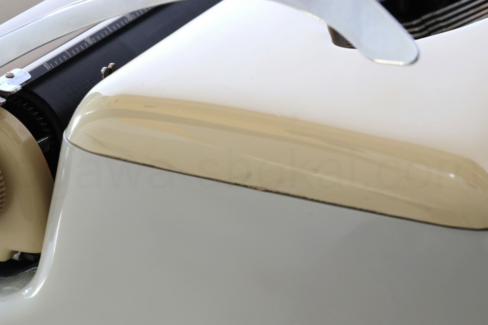 エコノミー品質のタイプライターですので、オーバーホール(分解洗浄)はいたしておりませんが、徹底的なクリーニングで清潔なタイプライターです。傷や汚れに関してはスタンダード品質と異なり、研磨やコーティングを省いておりますため傷や汚れが目立つ傾向です。ここでは全体的なお写真では分かりにくい傷や汚れを中心にご紹介しています。全ての傷汚れを掲載することは困難なので目立つものを中心にご紹介しています。こちらでクローズアップしていない傷汚れがある場合もございますのでご承知おきください。