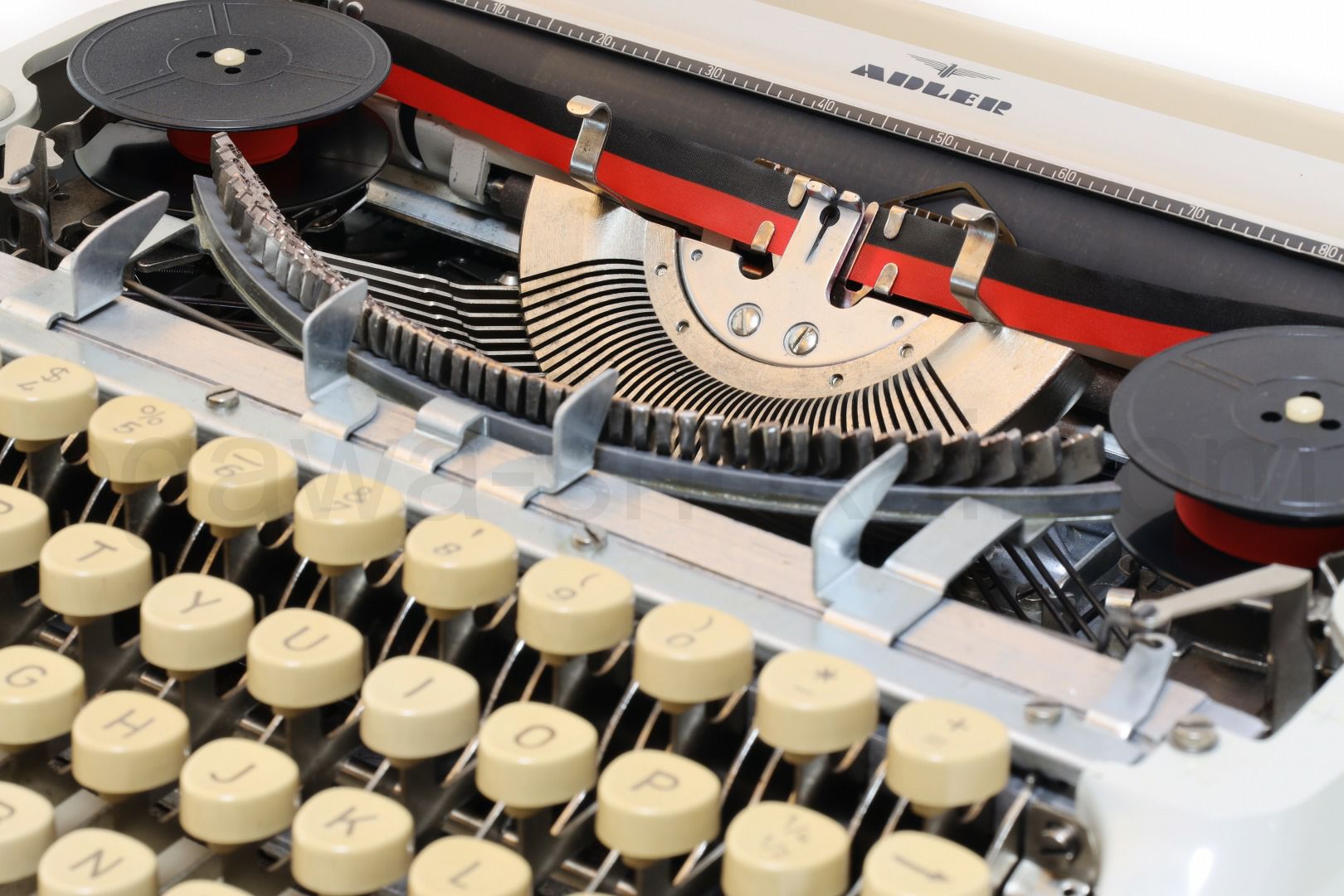 ボディーやケースなどは年代を伴う一般的な中古品質(スレ傷や動作に影響のない錆びや汚れあり)となっていますがその分お求めやすく、タイプライターの内部は専門店品質でオーバーホール済ですのできちんと使えるタイプライターをお探しの方に最適です。スタンダード品質でも傷が付きやすい部品は部分的に再塗装している高品質なものもございます。