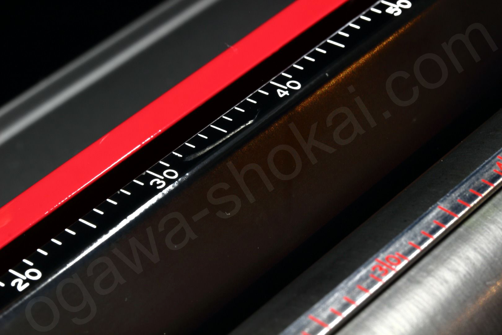 ペーパーガイドスケールに小さなキズがあります。