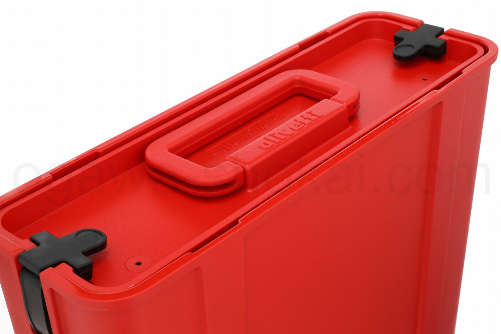 好評につき12作目の製作となりました、真っ赤なバケツと呼ばれ人気のあるオリベッティ バレンタインのボディやケースなどを再塗装して今はなき新品タイプライターのコンディションに近いフルレストアされた中古タイプライターです。バレンタインはスレ傷が本当に付きやすくせっかくの綺麗な赤がくすんでしまったものが多いため、ベースコートの上からクリア塗装をしオリジナルより傷が付きにい塗装となっております。もちろんタイプライターの内部は専門店品質でオーバーホール(分解洗浄)しており各部注油/調整/点検済なので届いたらすぐに。そして何より重要な、手に入れたその時限りではなく長期に渡ってご使用いただけます。タイプライター専門店でしっかり整備された程度の良好なタイプライターをお試しください。痛みのあるケースのゴムとリボンスプールは当店オリジナルの新品に交換しています。