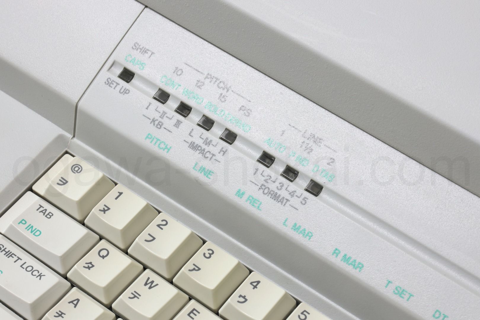| キーボードセレクター | タイピングするデイージーホイールに合わせて、スタンダード/インターナショナル/シンボルの3種類から選択出来ます。注:インターナショナル/シンボルの活字は販売終了しています。 |