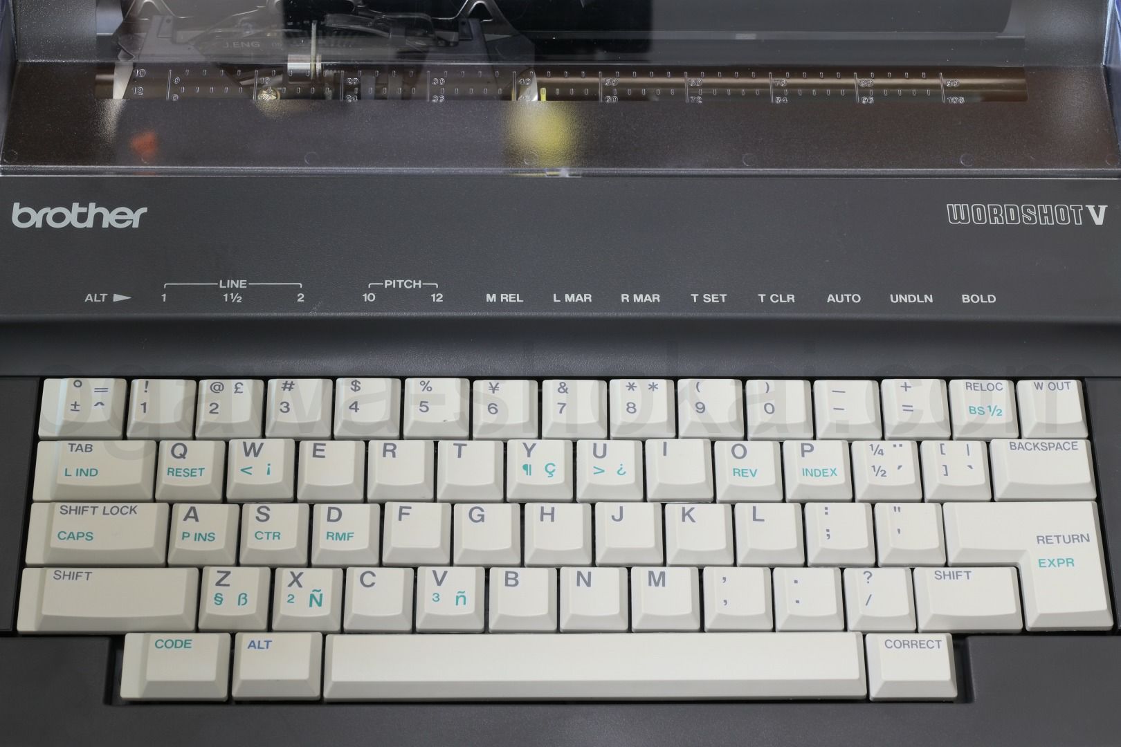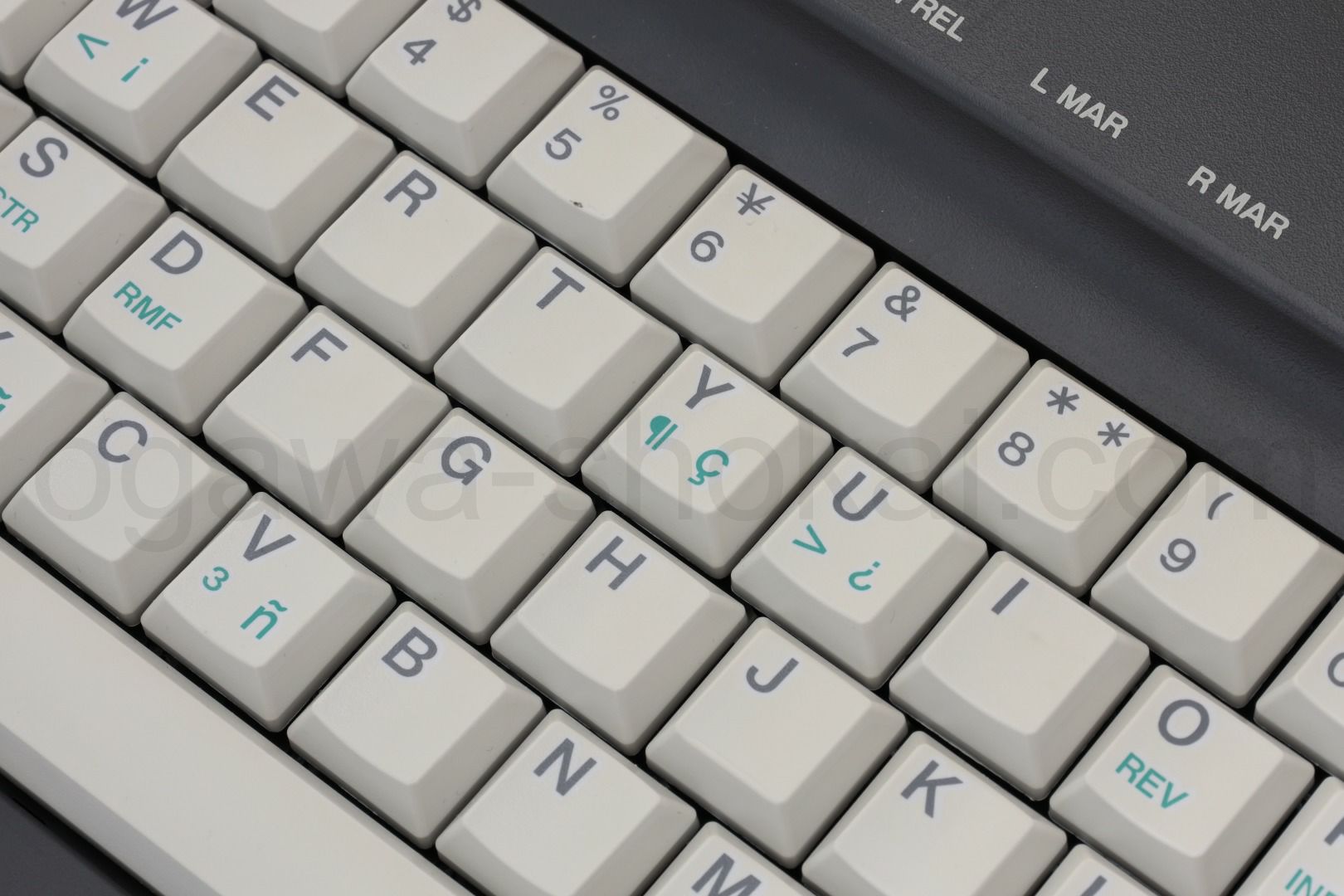 | キーボードセレクター | タイピングするデイージーホイールに合わせて、スタンダード/インターナショナル/シンボルの3種類から選択出来ます。注:インターナショナル/シンボルの活字は販売終了しています。 |