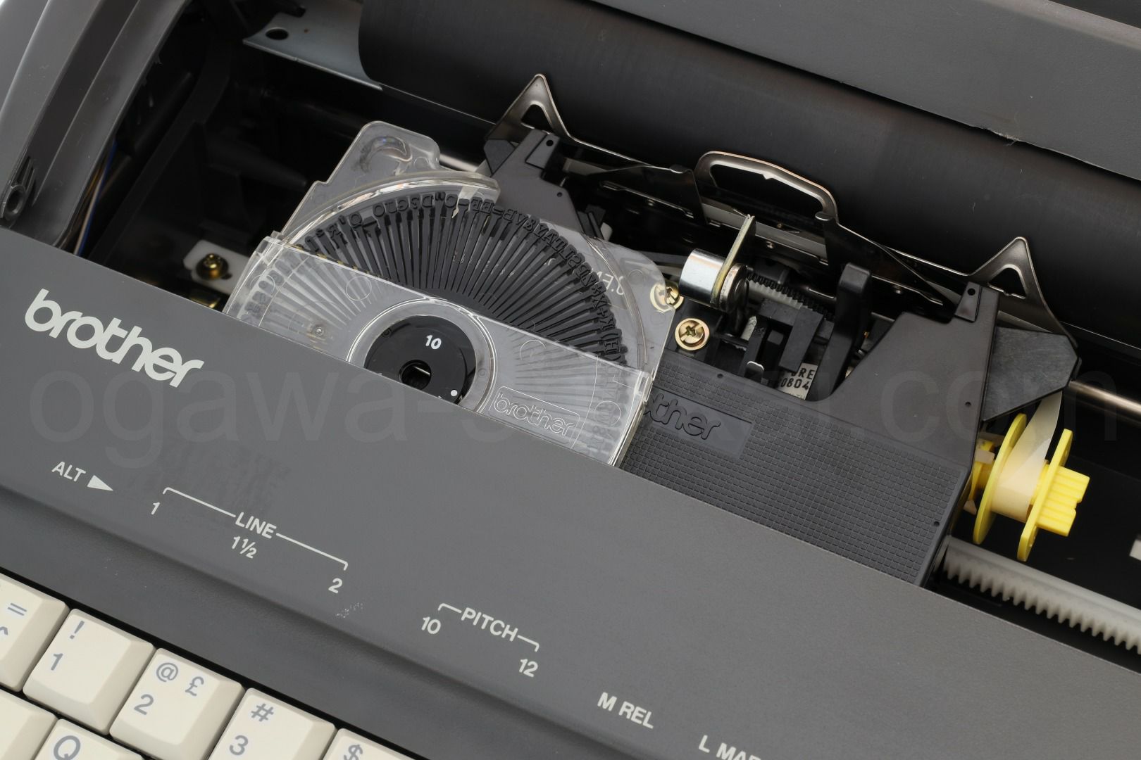 | カセット式デイージーホイール | ワンタッチで交換ができるbrother独自のカセット式デイージーホイールを採用。美しく多彩なタイプフェースと静かで軽快なタイピングをお約束いたします。 |