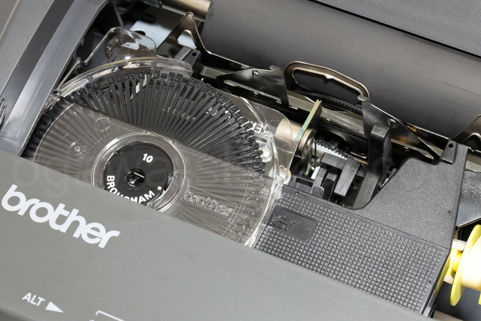 | カセット式デイージーホイール | ワンタッチで交換ができるbrother独自のカセット式デイージーホイールを採用。美しく多彩なタイプフェースと静かで軽快なタイピングをお約束いたします。 |