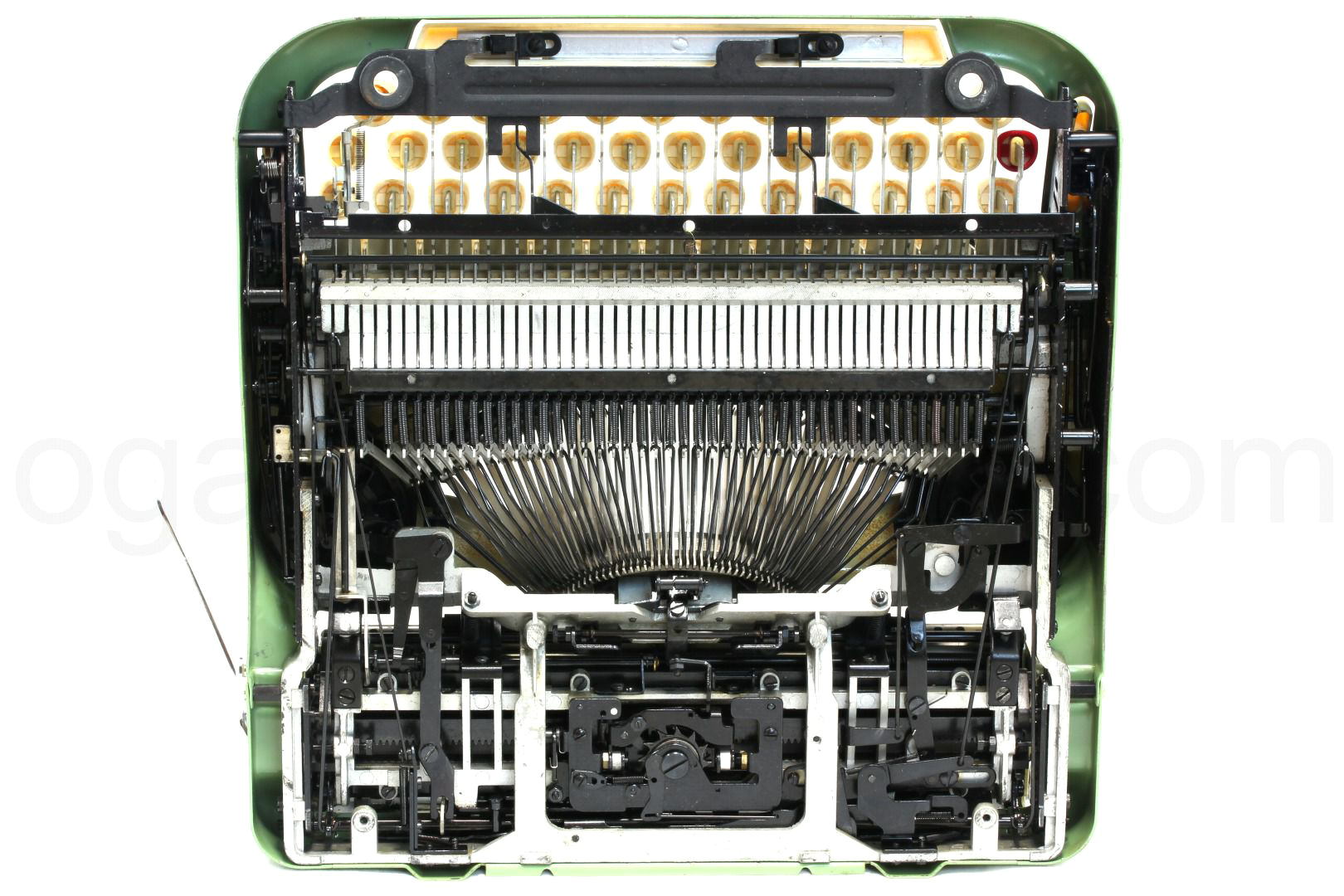 ボディーやケースなどは年代を伴う一般的な中古品質(スレ傷や動作に影響のない錆びや汚れあり)となっていますがその分お求めやすく、タイプライターの内部は専門店品質でオーバーホール済ですのできちんと使えるタイプライターをお探しの方に最適です。スタンダード品質でも傷が付きやすい部品は部分的に再塗装している高品質なものもございます。
