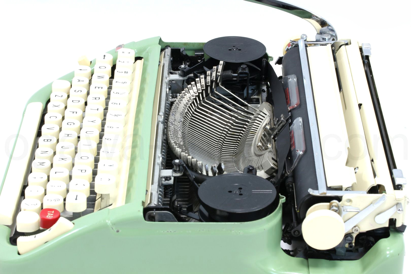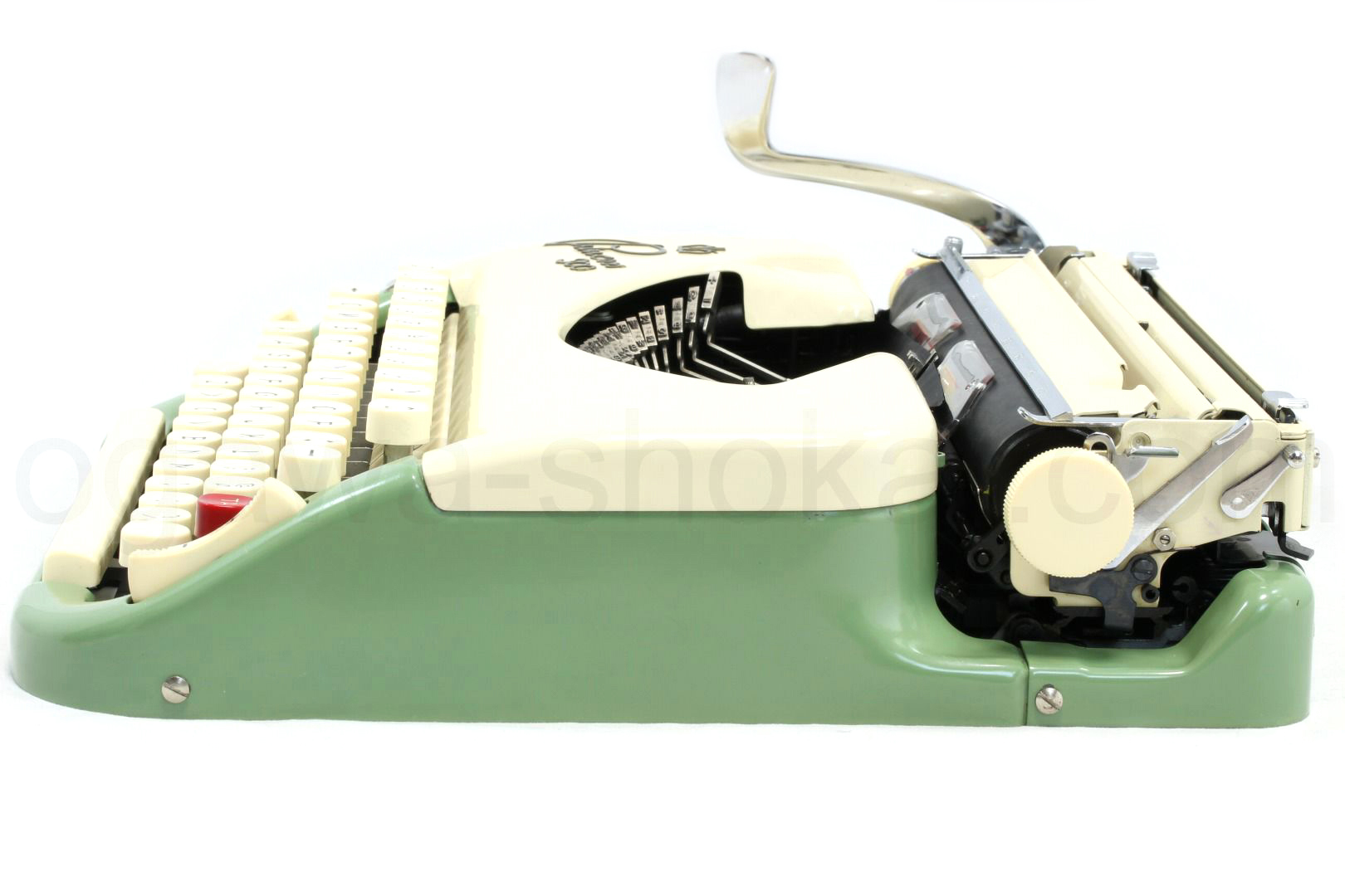今はなき新品の手動式タイプライターに近いクオリティーで、スタンダード品質に比べて高価になりますがボディーやケースなどに再塗装を施しています。もちろんタイプライターの内部は専門店品質でオーバーホール済ですので、きちんと使えるのはもちろん見た目も美しい中古タイプライターです。