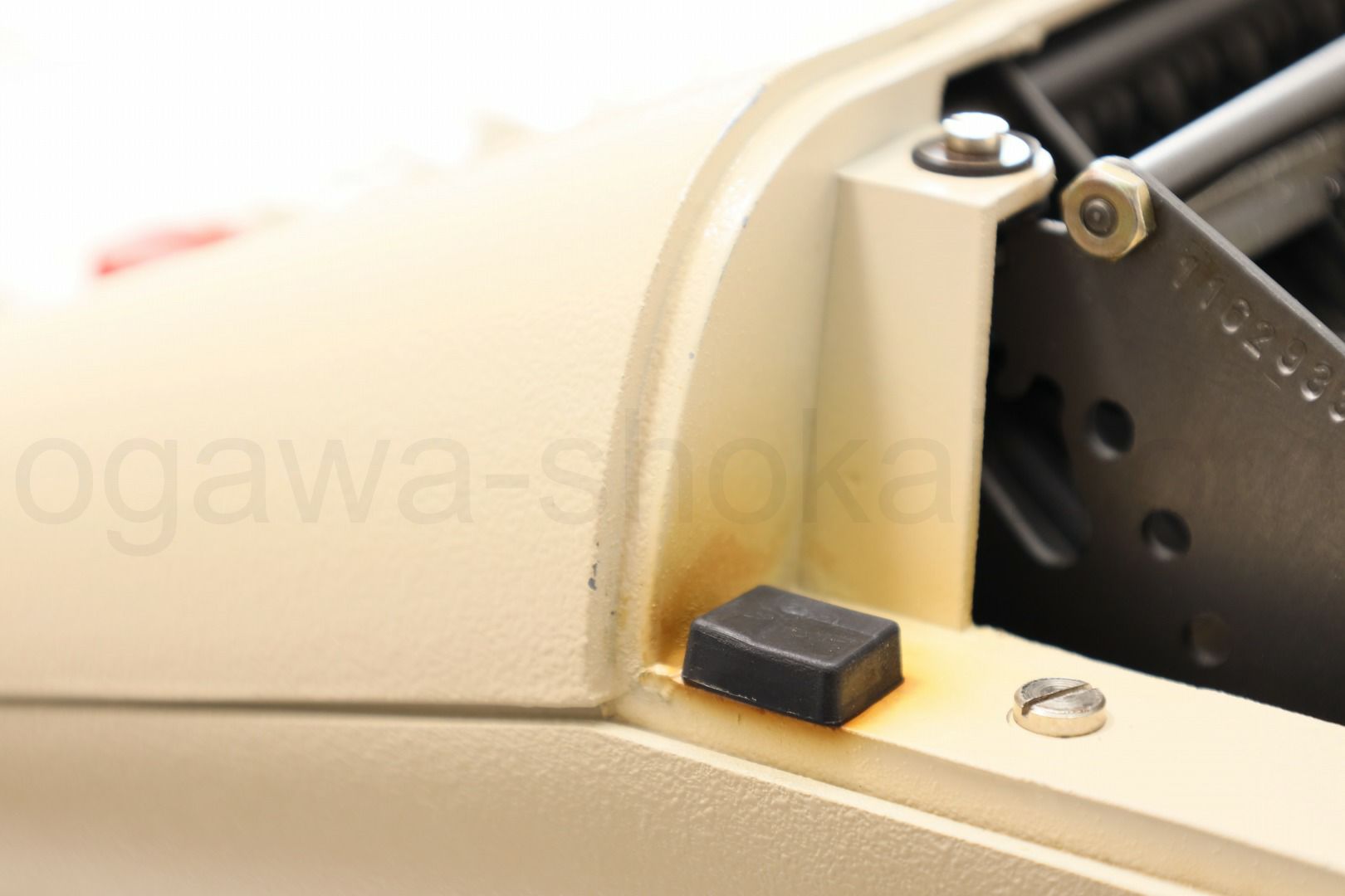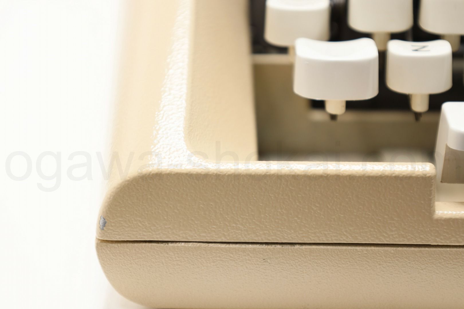本体、ケースともに研磨やコーティングをしておりますので、一般的な中古タイプライターに比べて綺麗に仕上がっていますが、クリーニングで消せない変色や小傷がございます。ここでは全体的なお写真では分かりにくい傷や汚れを中心にご紹介しています。全ての傷汚れを掲載することは困難なので目立つものを中心にご紹介しています。こちらでクローズアップしていない傷汚れがある場合もございますのでご承知おきください。ボディー、ケースとも再塗装されていない一般的な中古タイプライターとしては上級レベルです(当店比較)。