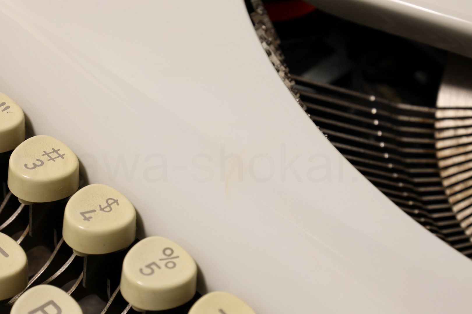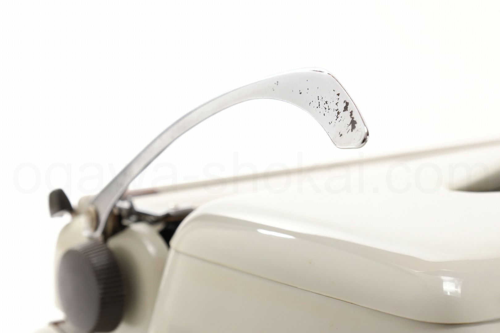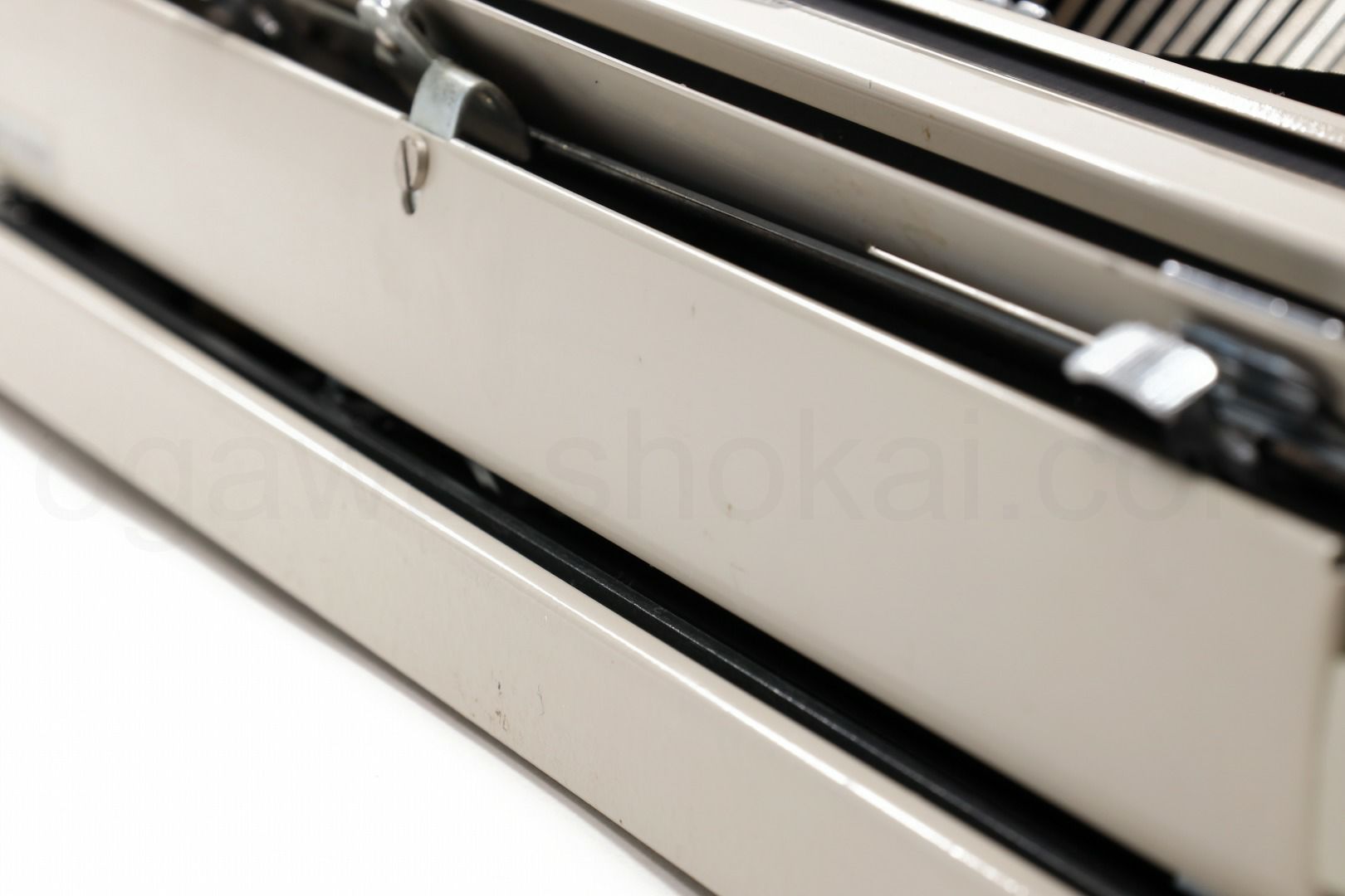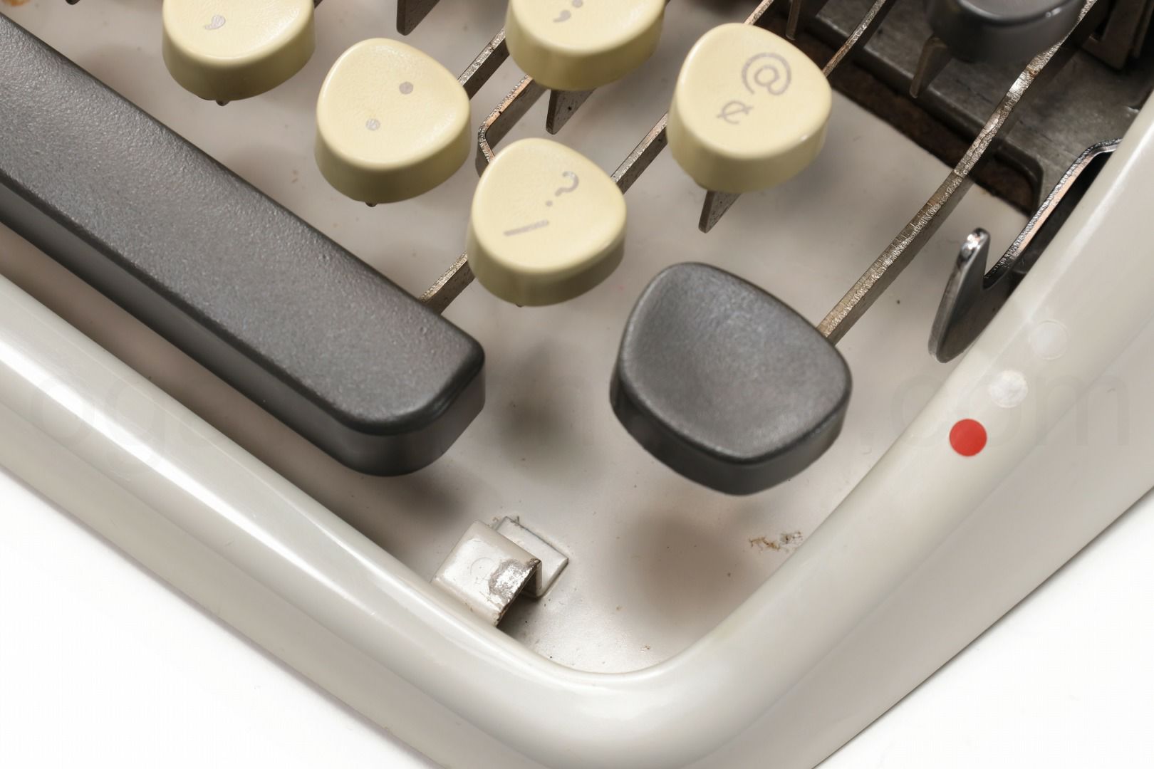 丹念にオーバーホール、クリーニングを行っているので不衛生ではありませんが、タイプライター本体には全体的に変色や錆、小傷があります。ここでは全体的なお写真では分かりにくい傷や汚れを中心にご紹介しています。全ての傷汚れを掲載することは困難なので目立つものを中心にご紹介しています。こちらでクローズアップしていない傷汚れがある場合もございますのでご承知おきください。ボディー、ケースとも再塗装されていない一般的な中古タイプライターとしては標準レベルです(当店比較)。