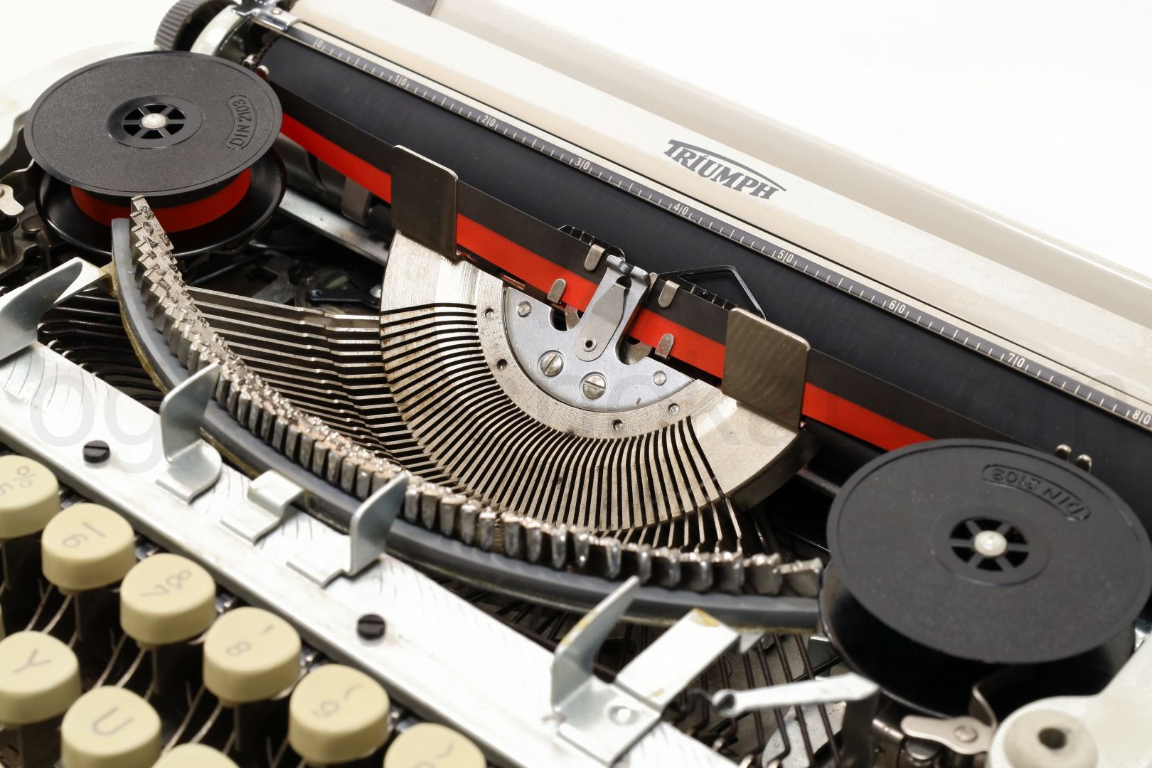 ボディーやケースなどは年代を伴う一般的な中古品質(スレ傷や動作に影響のない錆びや汚れあり)となっていますがその分お求めやすく、タイプライターの内部は専門店品質でオーバーホール済ですのできちんと使えるタイプライターをお探しの方に最適です。スタンダード品質でも傷が付きやすい部品は部分的に再塗装している高品質なものもございます。