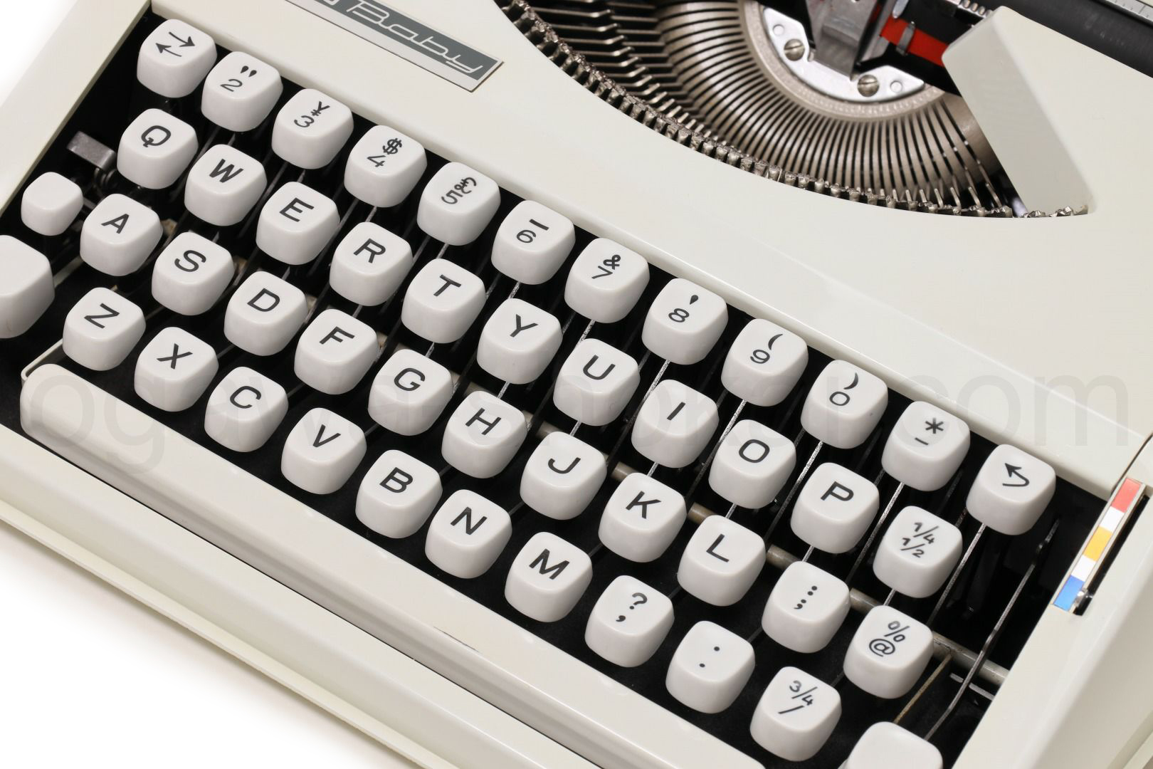 丹念にオーバーホール、クリーニングを行っているので不衛生ではありませんが、日焼けや小さな傷があります。ここでは全体的なお写真では分かりにくい傷や汚れを中心にご紹介しています。全ての傷汚れを掲載することは困難なので目立つものを中心にご紹介しています。こちらでクローズアップしていない傷汚れがある場合もございますのでご承知おきください。再塗装されていない一般的な中古タイプライターとしては中級レベルです(当店比較)。