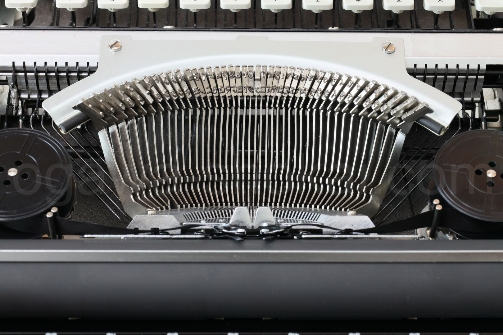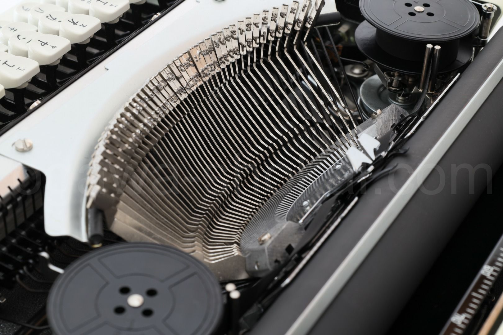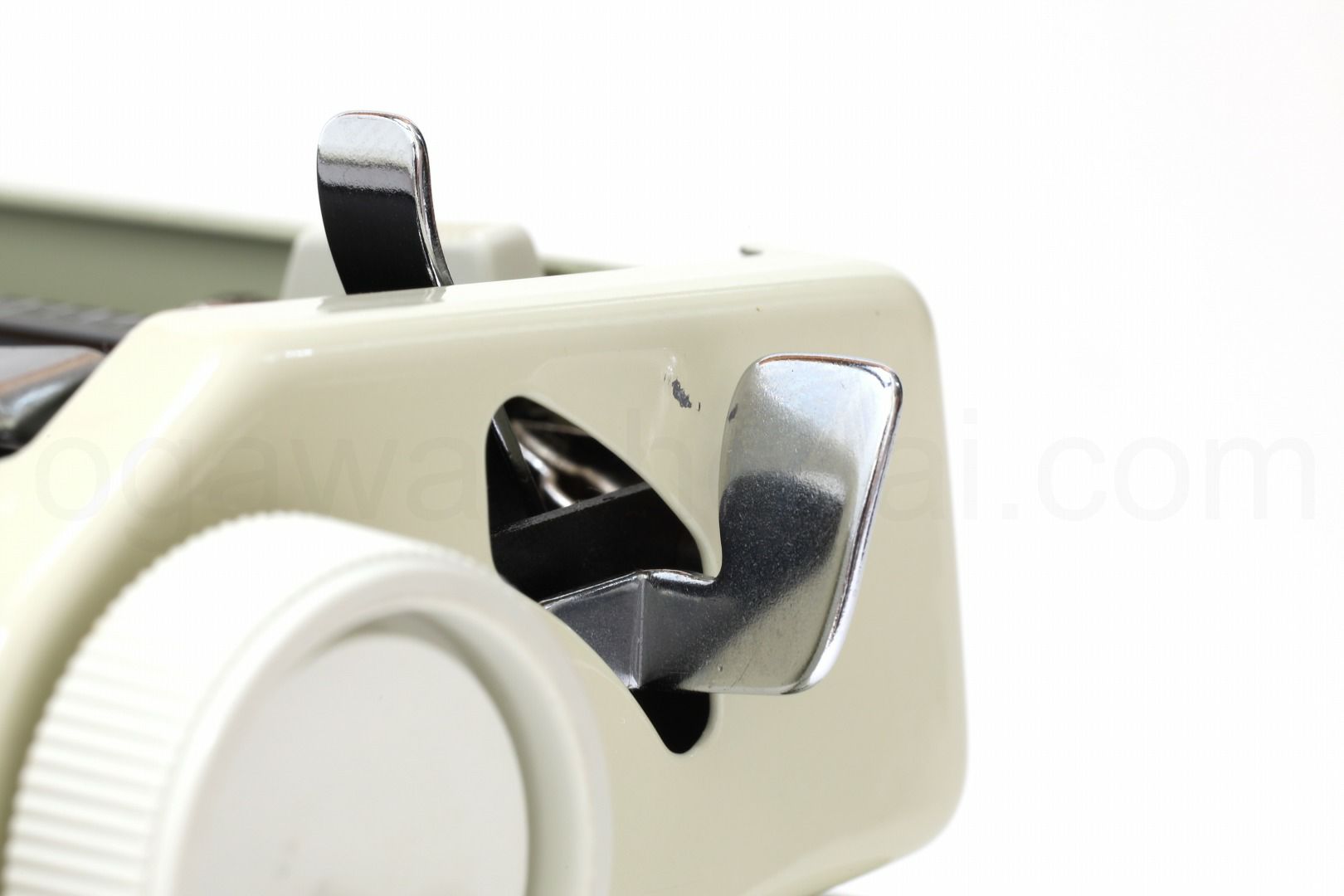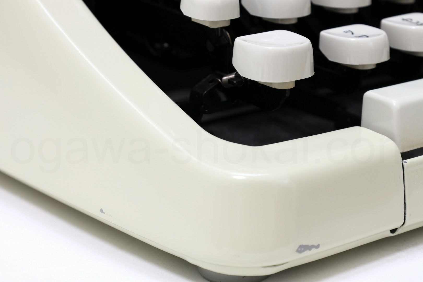 丹念にオーバーホール、クリーニングを行っているので不衛生ではありませんが、小さな傷はございます。ここでは全体的なお写真では分かりにくい傷や汚れを中心にご紹介しています。全ての傷汚れを掲載することは困難なので目立つものを中心にご紹介しています。こちらでクローズアップしていない傷汚れがある場合もございますのでご承知おきください。再塗装されていない一般的な中古タイプライターとしては最上級レベルです(当店比較)。