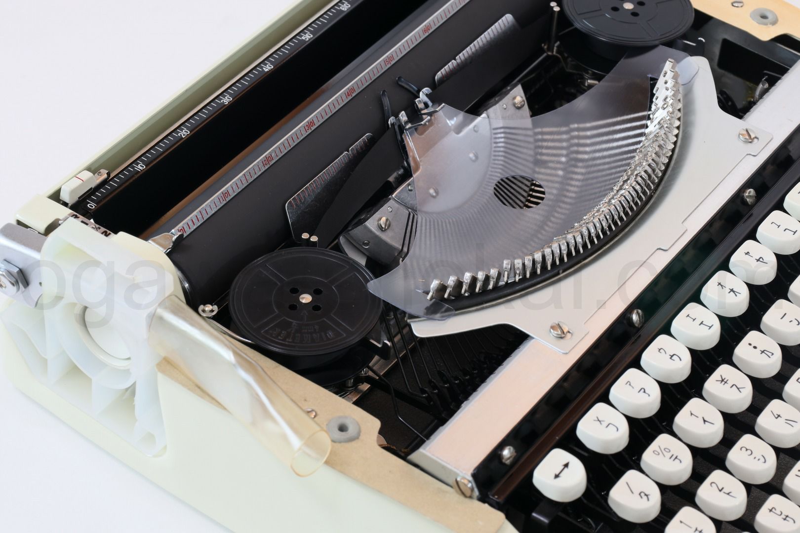 ボディーやケースなどは年代を伴う一般的な中古品質(スレ傷や動作に影響のない錆びや汚れあり)となっていますがその分お求めやすく、タイプライターの内部は専門店品質でオーバーホール済ですのできちんと使えるタイプライターをお探しの方に最適です。スタンダード品質でも傷が付きやすい部品は部分的に再塗装している高品質なものもございます。