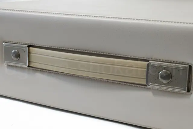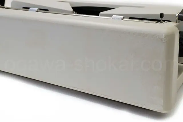 本体、ケースともに研磨をしておりますので、一般的な中古タイプライターに比べて綺麗に仕上がっていますが、クリーニングで消せない変色や小傷がございます。ここでは全体的なお写真では分かりにくい傷や汚れを中心にご紹介しています。全ての傷汚れを掲載することは困難なので目立つものを中心にご紹介しています。こちらでクローズアップしていない傷汚れがある場合もございますのでご承知おきください。ボディー、ケースとも再塗装されていない一般的な中古タイプライターとしては背面に痛みがあるため下級レベルです(当店比較)。