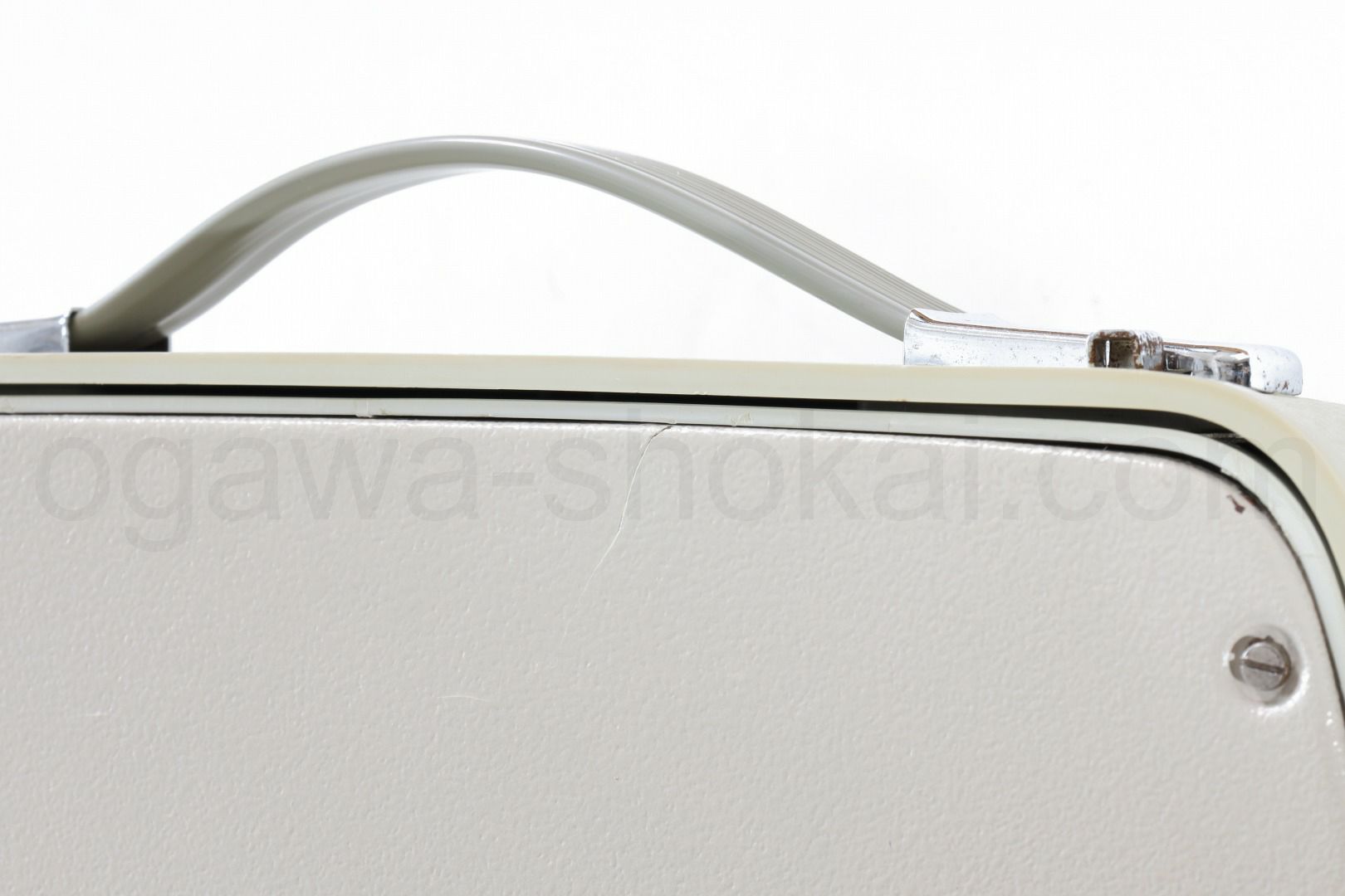 丹念にオーバーホール、クリーニングを行っているので不衛生ではありませんが、タイプライター本体には全体的に変色や錆、小傷があります。ここでは全体的なお写真では分かりにくい傷や汚れを中心にご紹介しています。全ての傷汚れを掲載することは困難なので目立つものを中心にご紹介しています。こちらでクローズアップしていない傷汚れがある場合もございますのでご承知おきください。ボディー、ケースとも再塗装されていない一般的な中古タイプライターとしては上級レベルです(当店比較)。