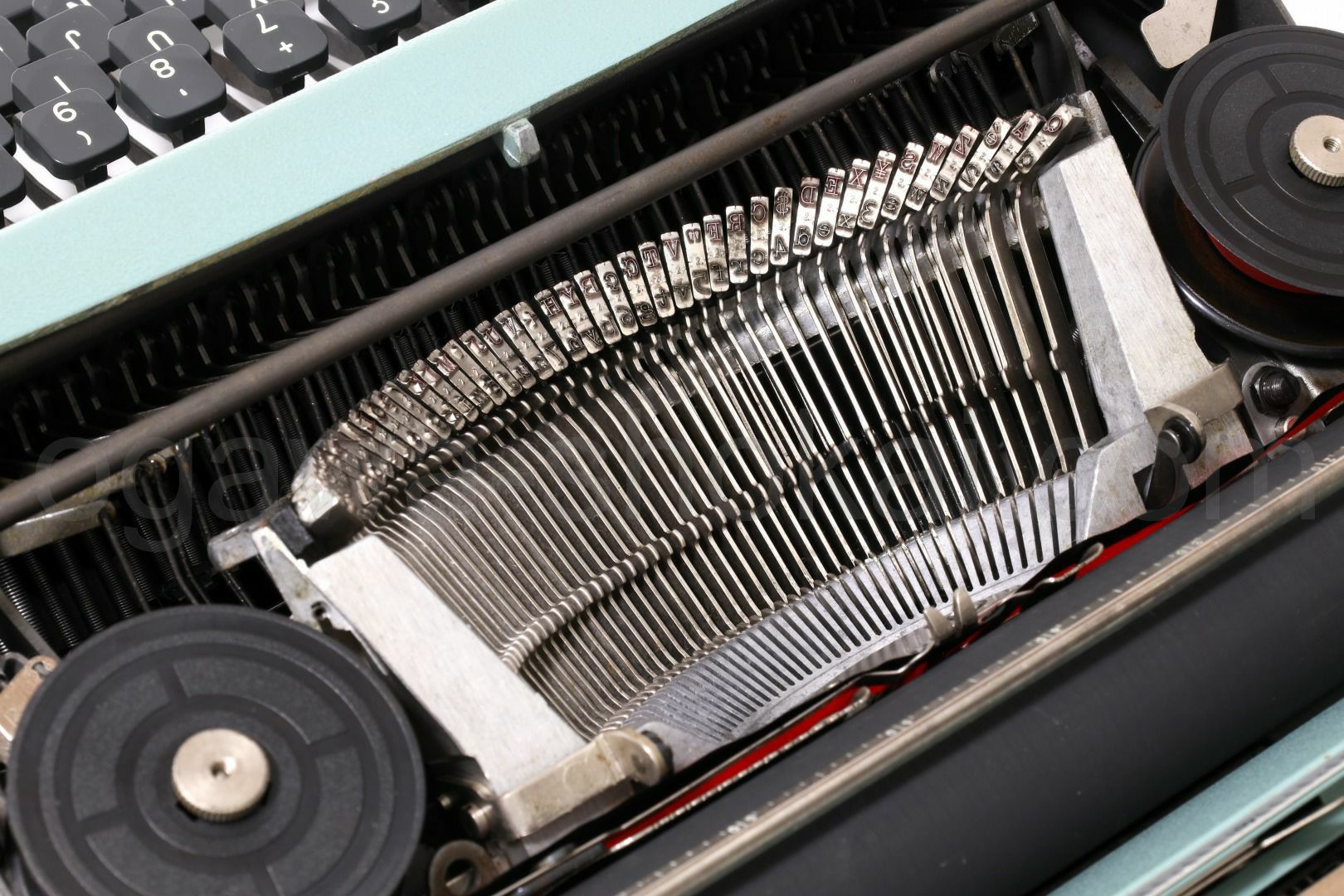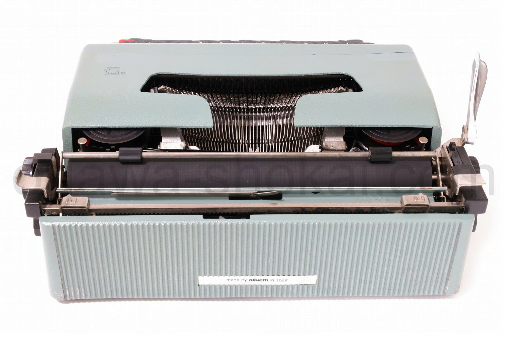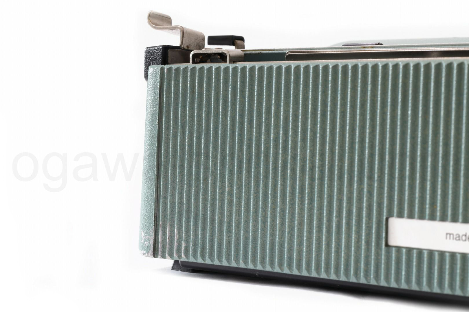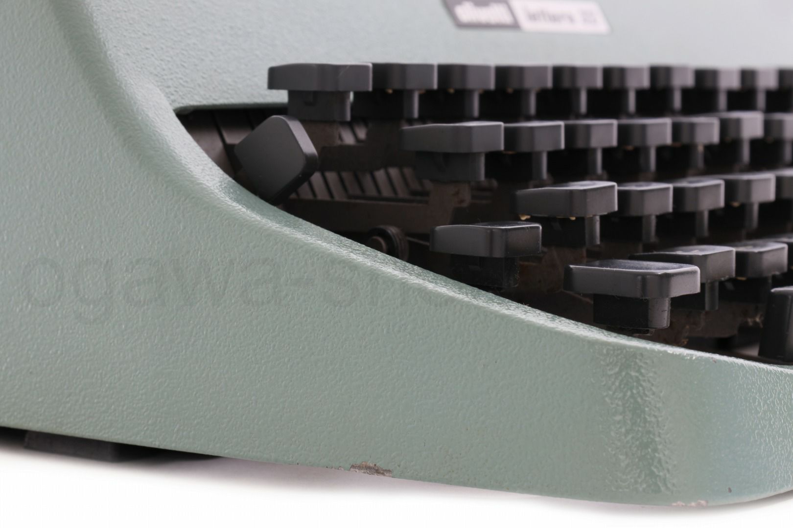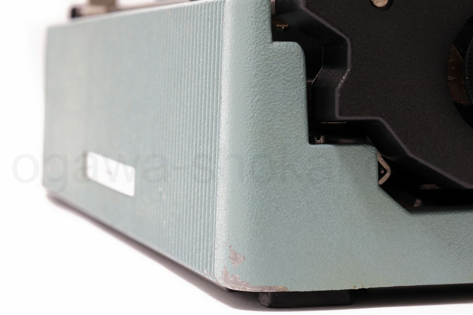 丹念にオーバーホール、クリーニングを行っているので不衛生ではありませんが、タイプライター本体は塗装落ちや傷が多めにある個体です。ここでは全体的なお写真では分かりにくい傷や汚れを中心にご紹介しています。全ての傷汚れを掲載することは困難なので目立つものを中心にご紹介しています。こちらでクローズアップしていない傷汚れがある場合もございますのでご承知おきください。再塗装されていない一般的な中古タイプライターレベルです(当店比較)。