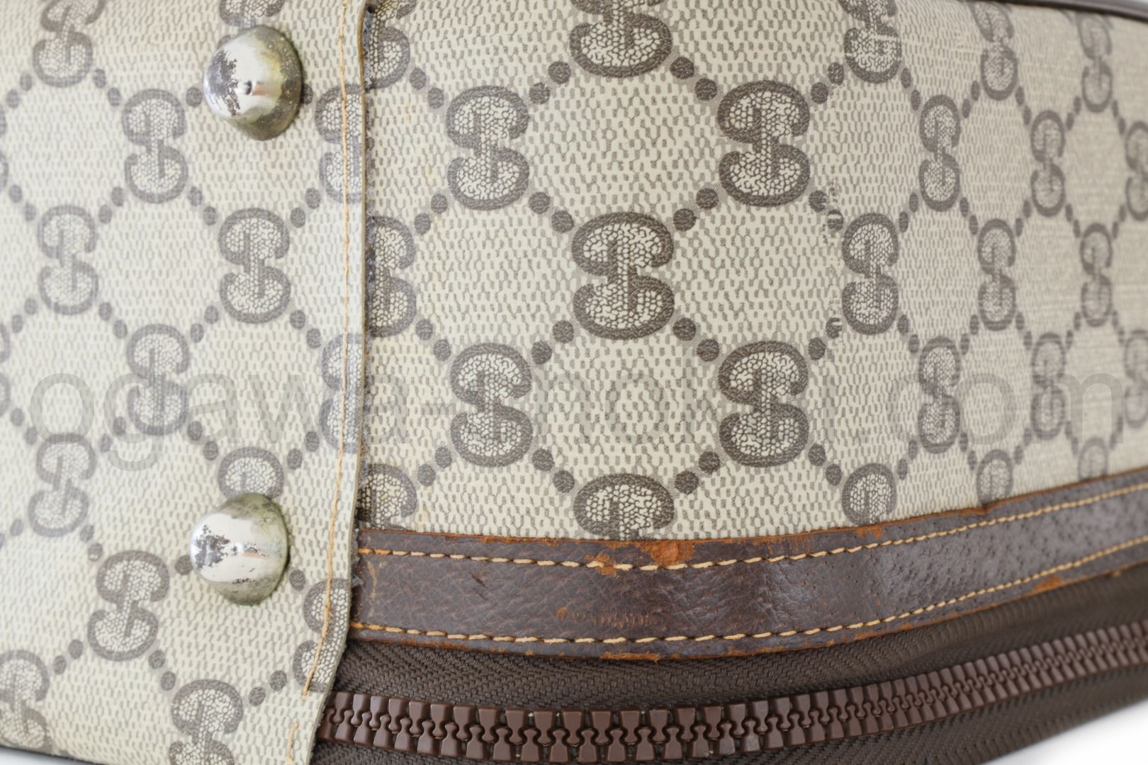 経年劣化の痛みはございますが、GUCCIケース個体の中では良好な部類かと思います。しかしながら全ての傷汚れを掲載することは困難です。こちらでクローズアップしていない痛みがある場合もございますのでご承知おきください。ケースの保証は一切ございませんのでご了承ください。拘りがあれば街の修理屋さんでお直しをご検討ください。