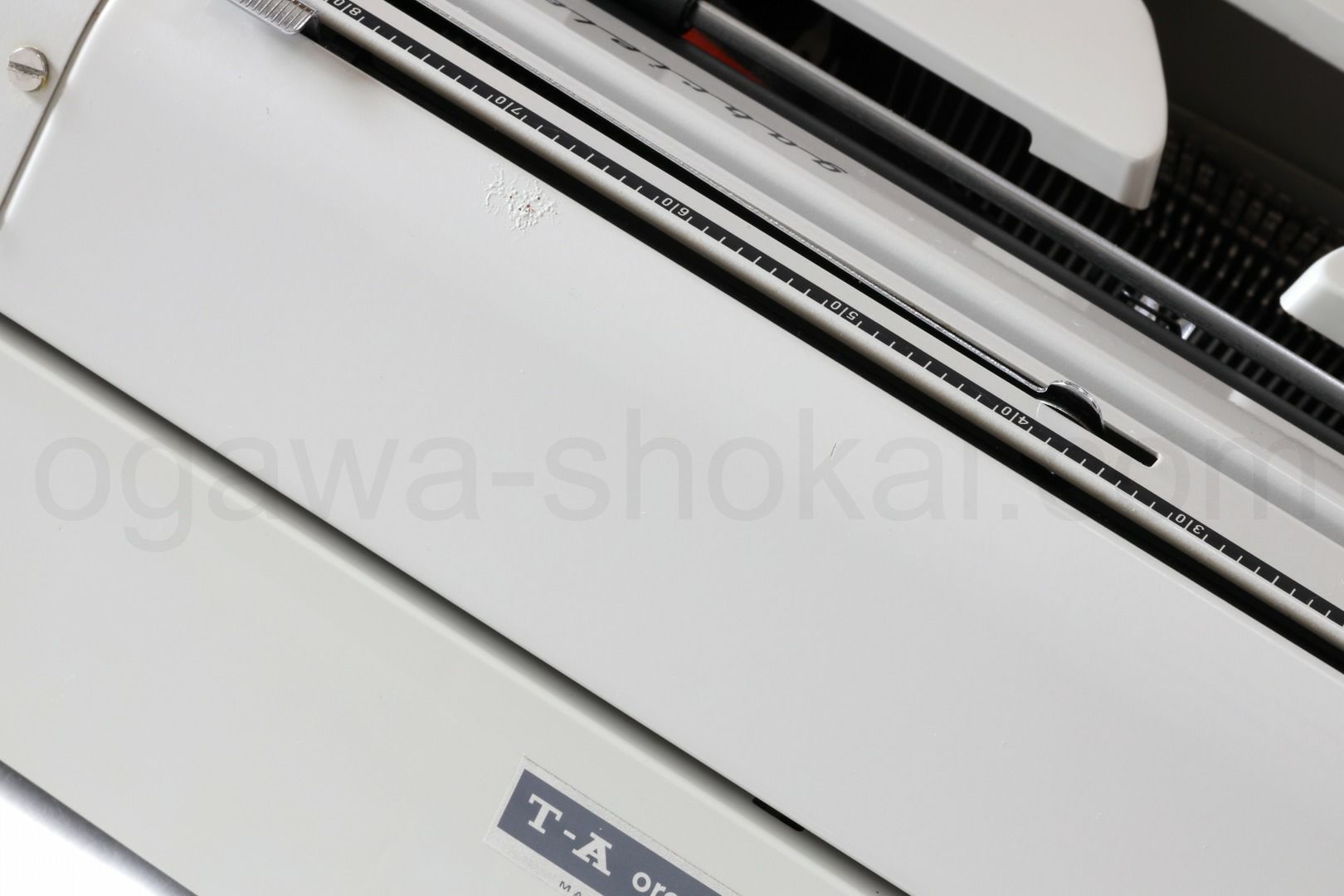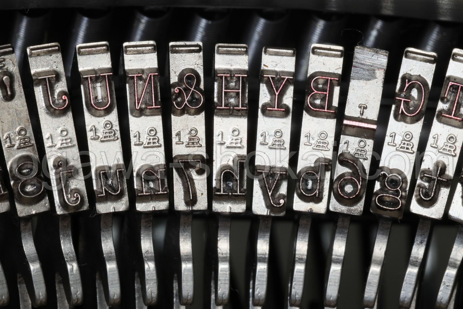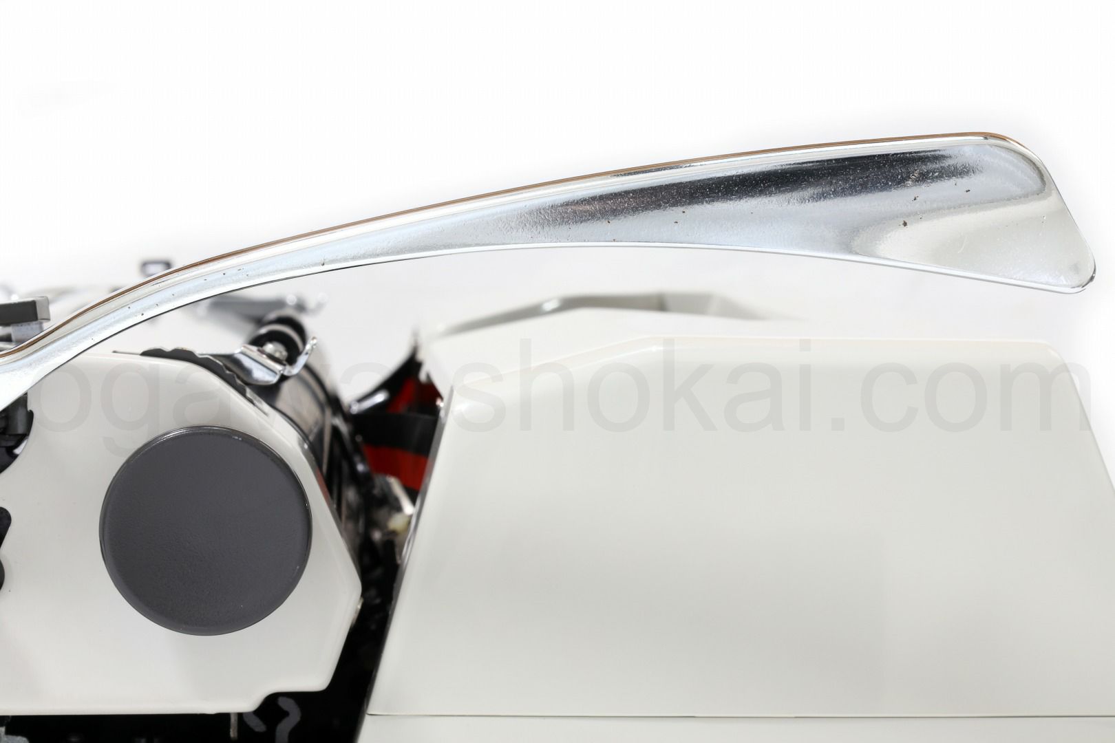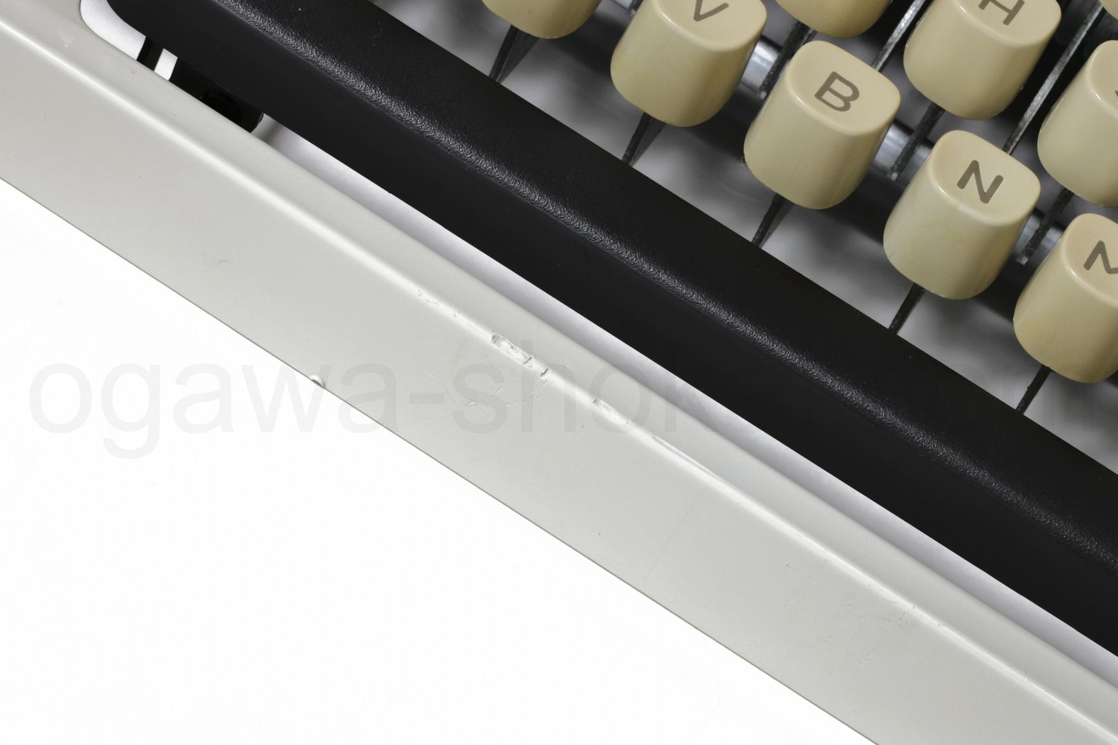 研磨しておりますので、一般的な中古タイプライターに比べて綺麗に仕上がっていますが、クリーニングで消せない変色や小傷がございます。ここでは全体的なお写真では分かりにくい傷や汚れを中心にご紹介しています。全ての傷汚れを掲載することは困難なので目立つものを中心にご紹介しています。こちらでクローズアップしていない傷汚れがある場合もございますのでご承知おきください。ボディー、ケースとも再塗装されていない一般的な中古タイプライターとしては上級レベルです(当店比較)。